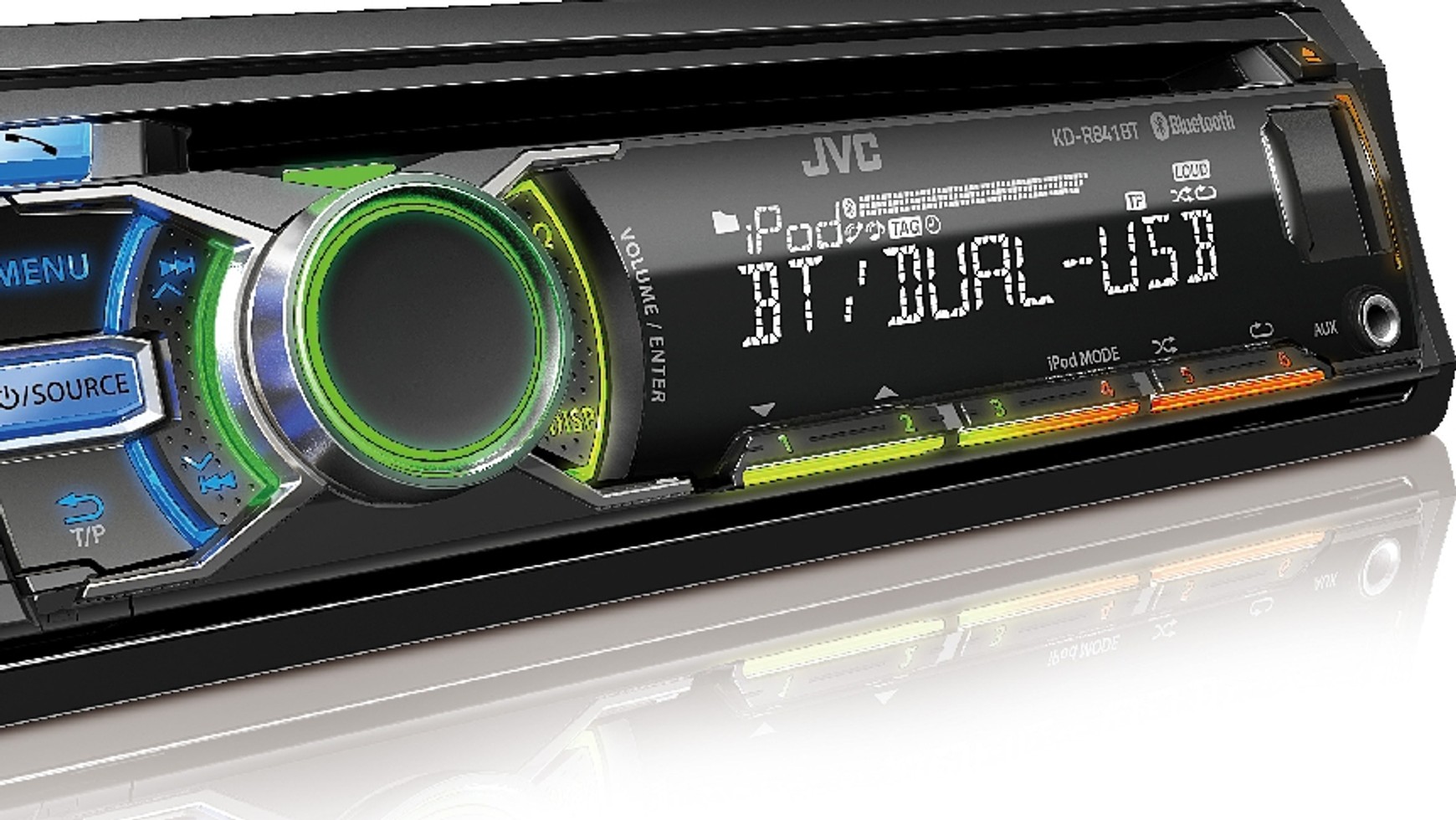 Czy 5 indywidualnych stref podświetlenia na panelu radia to nie przesada? JVC proponuje dość odważne rozwiązanie na początek tylko w jednym modelu radia samochodowego KD-R841. Panel podzielono na pięć stref z niezależną regulacją. Dla każdej można wybrać kolor z palety 30 000 barw albo skorzystać z jednego z sześciu wstępnie zaprogramowanych opcji. Iustawić poziom jasności niezależnie od pozostałych. Nie trudno o wrażenie, że sprzęt wówczas prezentuje się jak kolorofon na dyskotece. Zbędny bajer? JVC tłumaczy, że rozwiązanie przyda się w samochodach, w których zastosowano wielokolorowe podświetlenie zegarów, panelu klimatyzacji i oddzielnego monitora.