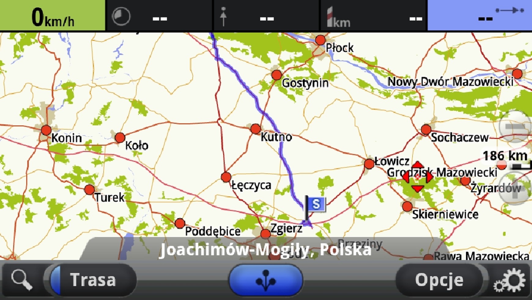 Yanosik i Korkowo.plNa mapie jest widoczny przebieg autostrady A1. Niestety program i serwis omijały drogę po wyznaczeniu trasy ze Strykowa do Gdyni.
