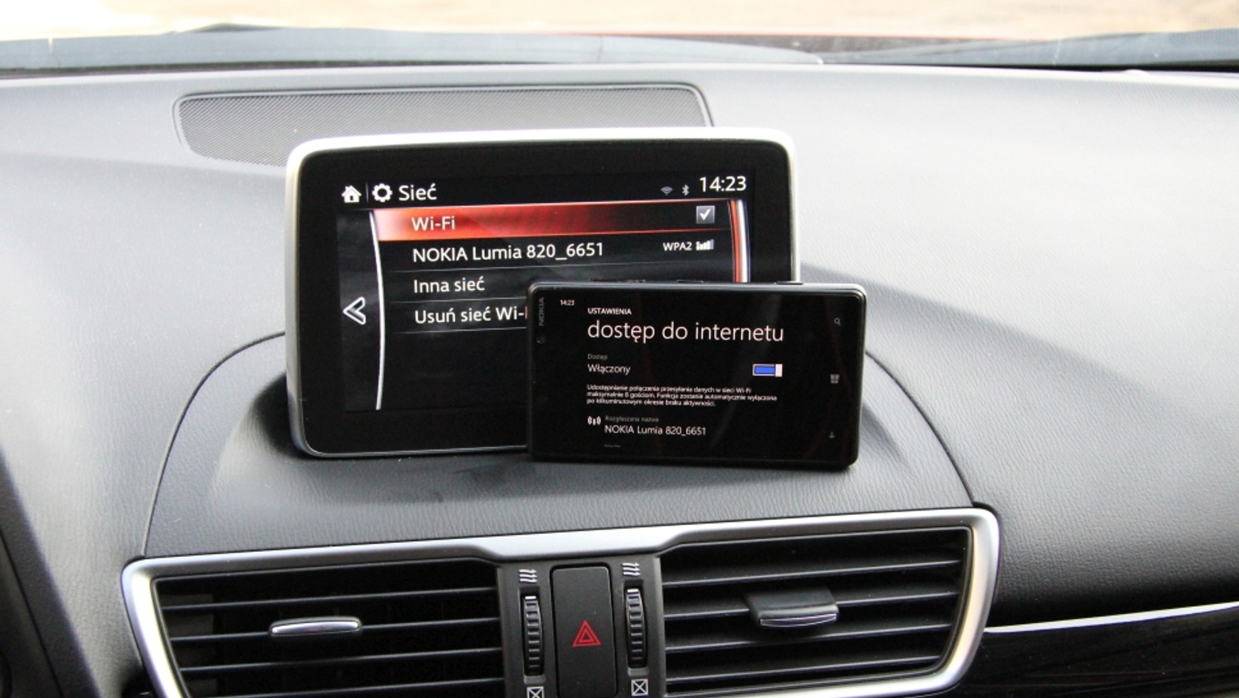 Łączenie z telefonem poprzez Wi-Fi nie trwa długo w Maździe 3. A przynajmniej nie powinno. W trakcie testu nie mieliśmy problemów z telefonami z Android, iOS oraz Windows Phone.