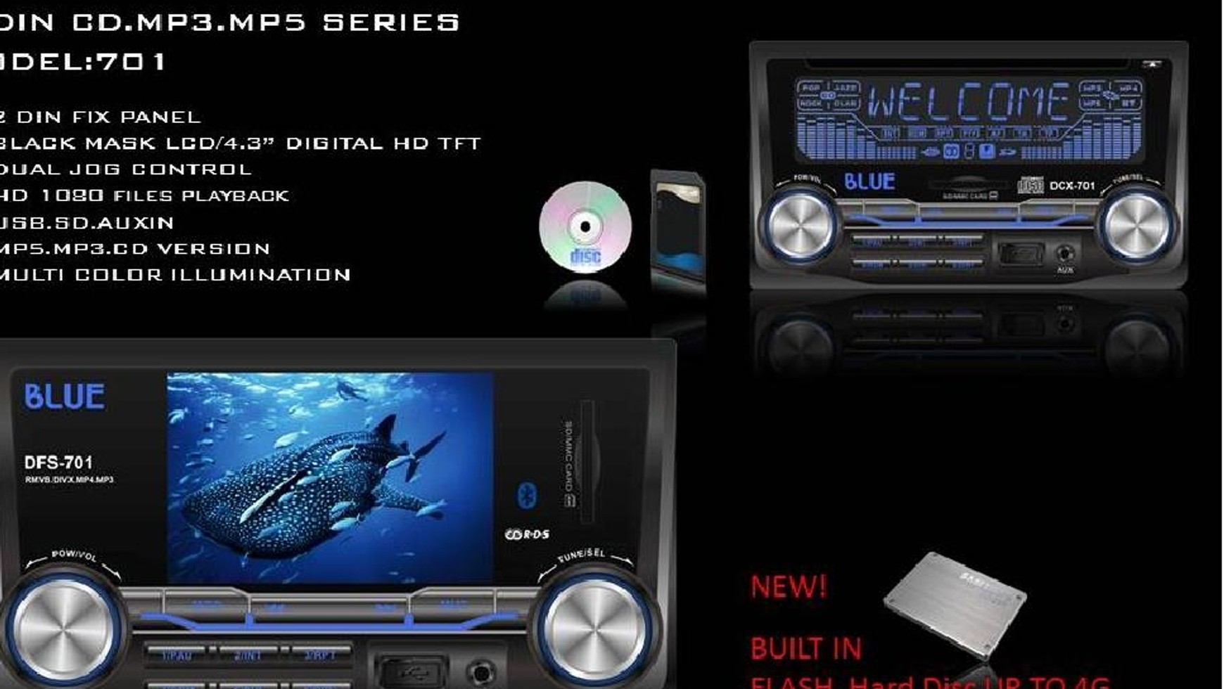 Nowe radio występuje w dwóch wersjach: tradycyjnej z odtwarzaczem płyt CD i czytnikiem kart oraz multimedialnej bez mechanizmu odtwarzacza CD ale za to z wbudowanym twardym dyskiem o pojemności 4GB. Producent chwali się, że sprzęt przyda się do odtwarzania filmów RMVB, DivX, MP4 a także plików audio MP3. Teoretycznie istnieje możliwość odtwarzania plików o jakości HD. Pytanie tylko czy ma to sens przy zastosowaniu niewielkiego ekranu? Jedyny użytek mogą mieć pasażerowie, jeśli dla nich zostanie podłączony znacznie większy monitor.