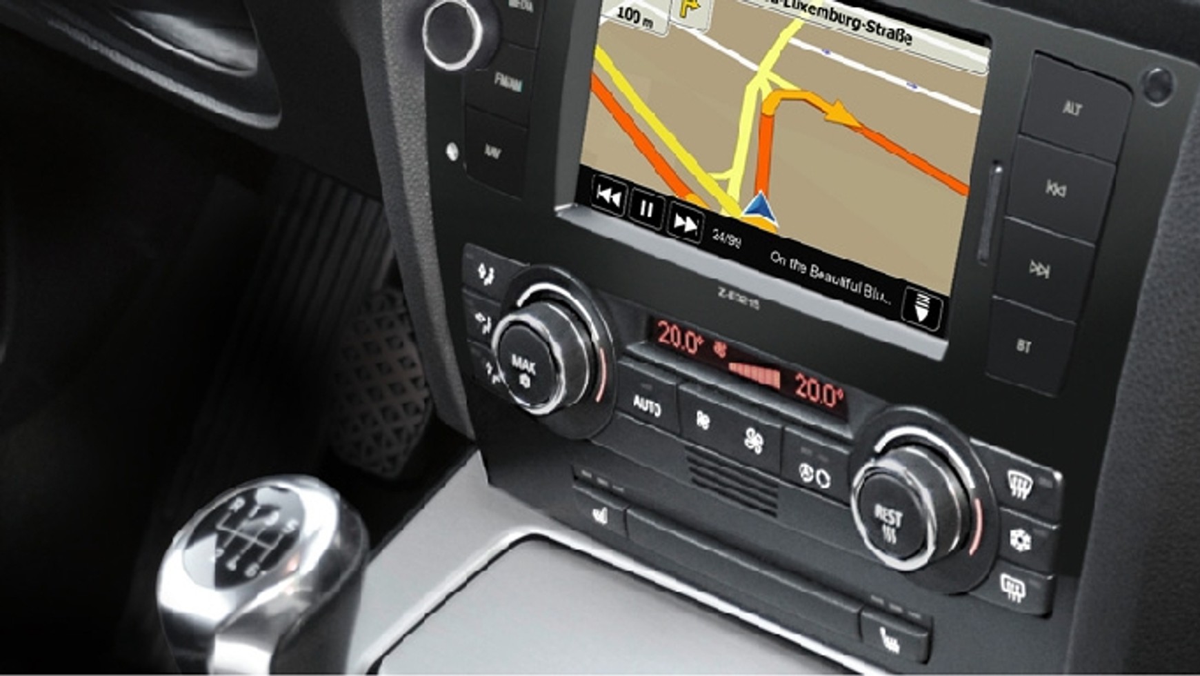 Integracja z BMWTo nie jest słowo na wyrost. By dopasować nowy sprzęt do BMW serii 3 konstruktorzy opracowali panel w którym uwzględniono sterowanie wentylacją i klimatyzacją. Wymieniając sprzęt wystarczy zatem podłączyć kostki zasilania, głośnikowe a także do układu sterowania klimatyzacją samochodu. Co ważne na ekranie nowego radia można zobaczyć menu systemu wentylacji a także czujników parkowania. Radioodtwarzacz współpracuje także z fabrycznym sterowaniem w kierownicy. Wszystko dzięki połączeniu i komunikacji poprzez instalację CAN. Na tym jednak nie koniec.