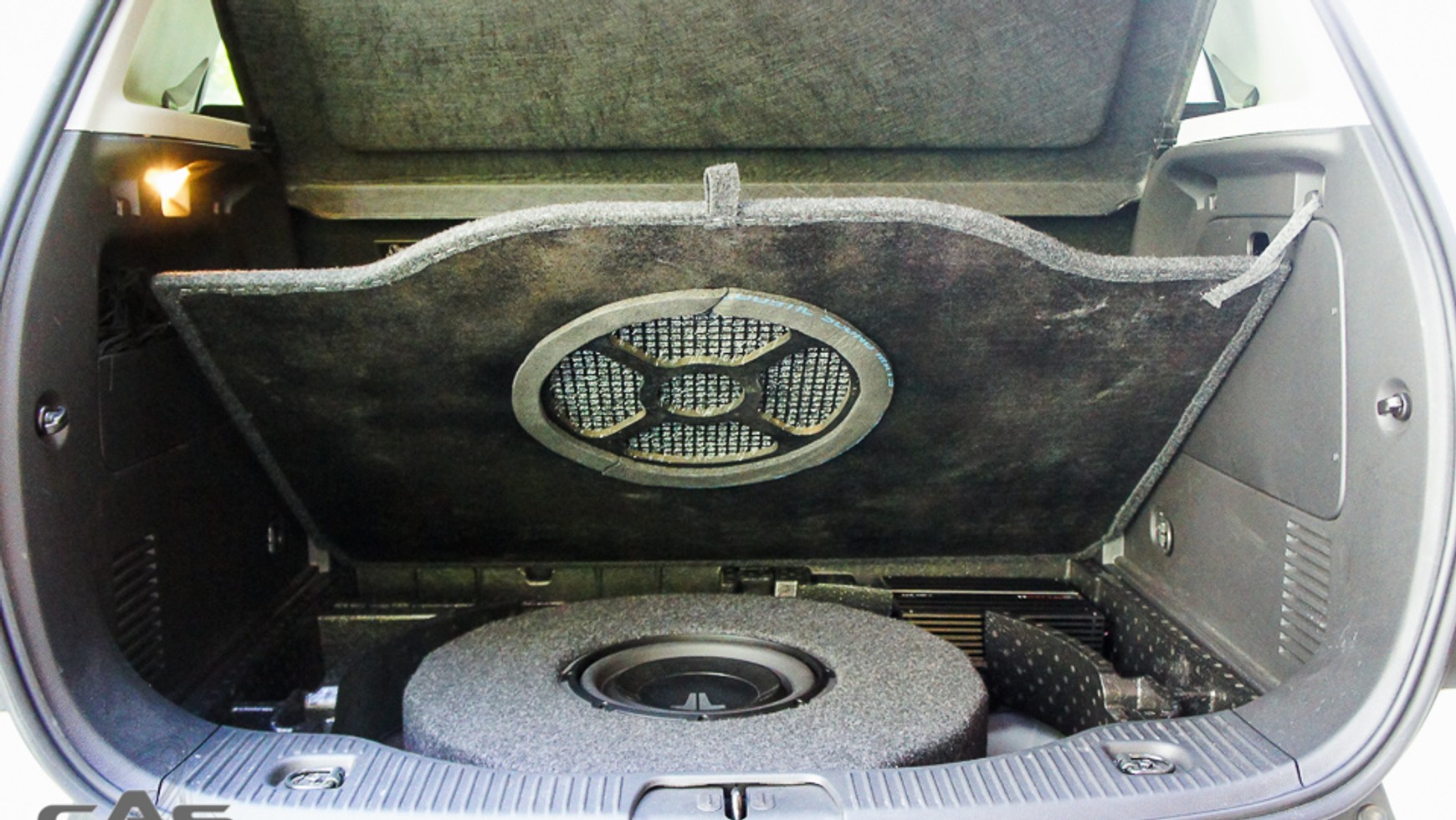 Subwoofer w bagażniku oznaczał konieczność dopasowania wykładziny. W miejsce fabrycznej pojawiła się nowa podłoga z wyciętymi otworami, by dźwięk z subwoofera docierał bez przeszkód do kabiny pasażerskiej. W porównaniu z fabryczną jest mocniejsza i solidniejsza. Bez obaw można zatem kłaść cięższe bagaże do samochodu. W końcu dobre nagłośnienie nie powinno wiązać się z wyrzeczeniami i ograniczeniem funkcjonalności samochodu. Nieprawdaż?