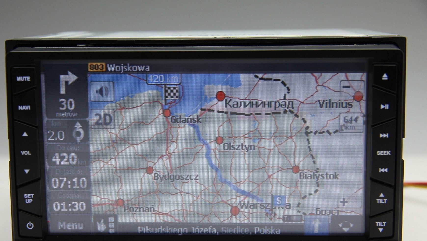AutoMapa w radiu samochodowymPopularny polski program bardzo dobrze działa w radiu z GPS. To co mile zaskakuje to krótki czas potrzebny na ustalenie właściwej pozycji. Przewodowa antena GPS dołączona do radia jest dobrej jakości (układ SiRFstar III), więc nie ma problemów z utrzymaniem odbioru sygnału także w trakcie jazdy. Samochód w którym testowaliśmy sprzęt nie ma podgrzewanej przedniej szyby, więc trudno stwierdzić, czy układ równie dobrze będzie działał w trudniejszych warunkach.