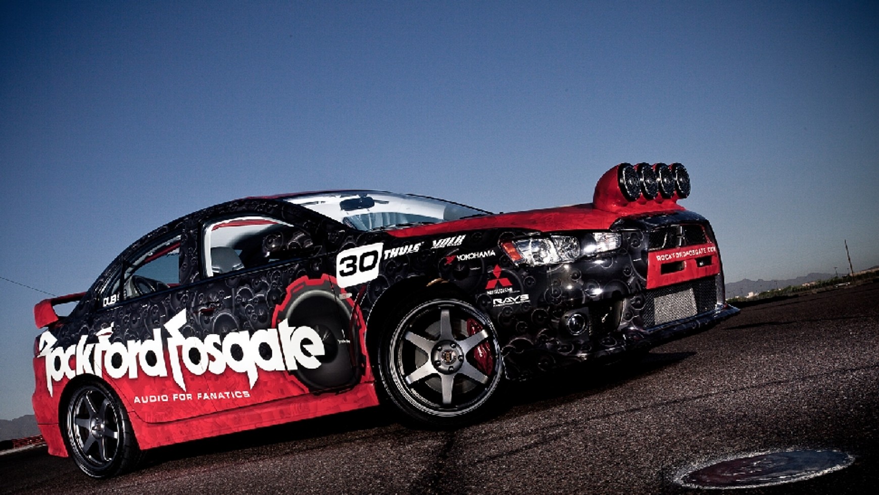 Mistubishi Lancer EVO X to oficjalny samochód demonstracyjny Rockford Fosgate w USA.