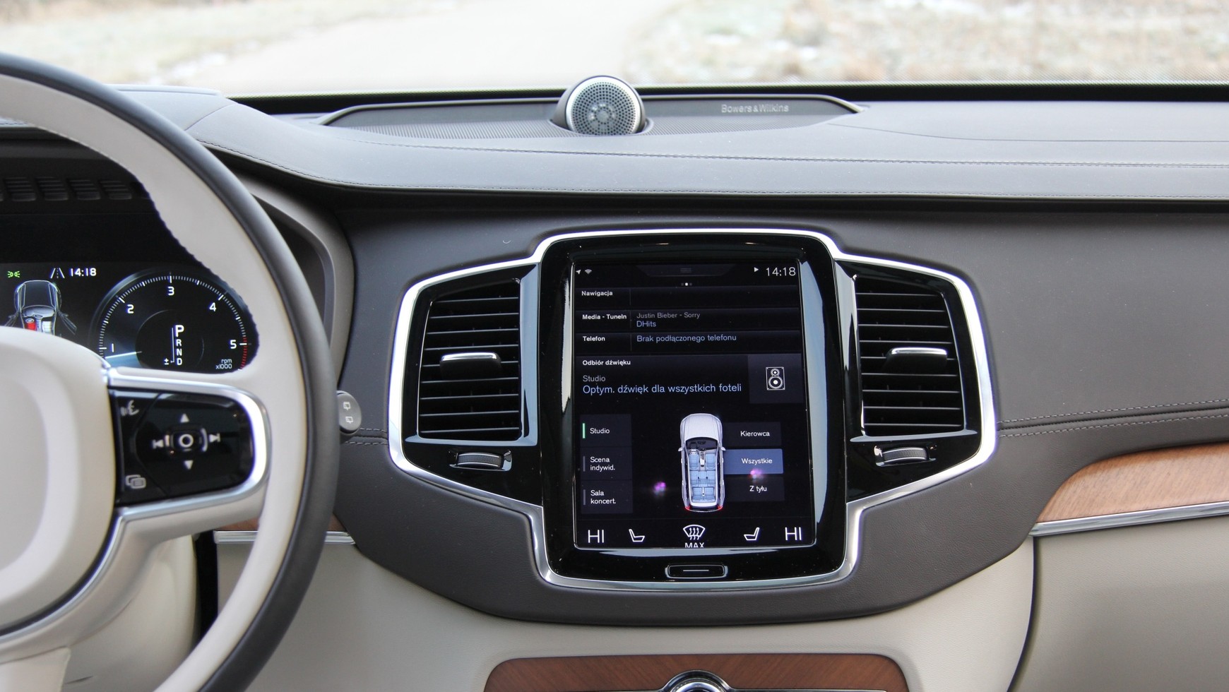 Do dziś pamiętam rozgoryczenie inżynierów Harman Kardon, gdy musieli się ugiąć przed designerami Mercedesa i umieścili zestaw trójdrożny w klasie S, przecząc wymaganiom akustyki. W przypadku Volvo było inaczej. B&W zastosowało zestawy trójdrożne tak jak trzeba. Głośniki średniotonowe i wysokotonowe umieszczono blisko siebie, by nie popsuć sceny, lokalizacji i odwzorowania. To nie tylko widać ale i słychać. Na jakość dźwięku, muzykalność, scenę czy precyzję trudno narzekać. Tym bardziej, że nawet mniej doświadczony słuchacz szybko zorientuje się, że akustycy poświęcili mnóstwo czasu na uzyskanie odpowiedniej sceny dźwiękowej.