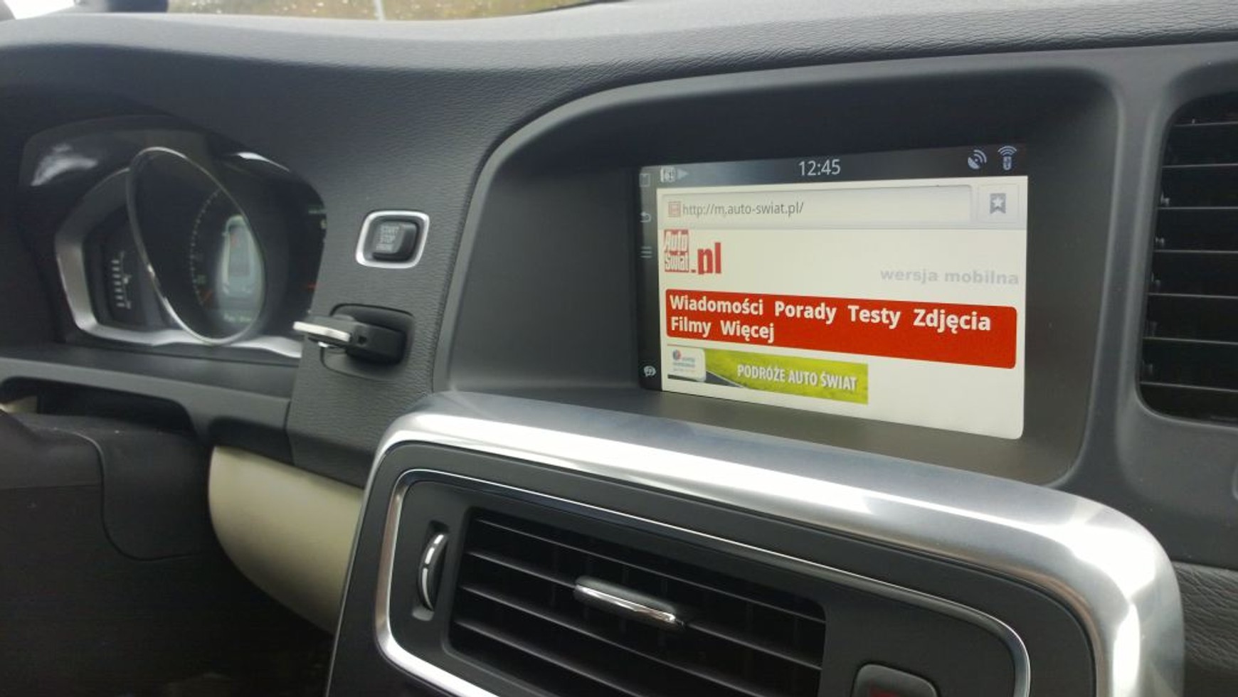 Auto-Świat w VolvoStrona internetowa auto-swiat.pl od razu ładowana jest w wersji mobilnej. Na szczęście można przełączyć się na pełną wersję naszego serwisu. Sensus całkiem sprawnie radzi sobie z przeglądaniem stron. Niemniej trzeba mieć na uwadze, że jest wciąż rozpoznawany jako sprzęt mobilny: smartfon czy tablet, więc zwykle ładuje się od razu mobilna wersja strony. Tak też było w przypadku innych popularnych serwisów.