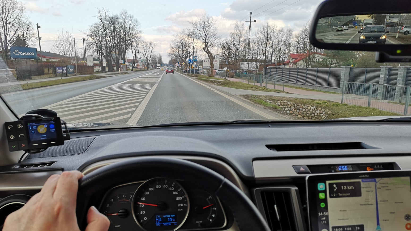 Podczas podróży korzystaliśmy nie tylko z samych aplikacji w telefonach. W przypadku Yanosika sięgnęliśmy także po kosztowne małe urządzenie z niewielkim ekranem, czyli Yanosik GTR (umieszczony na przedniej szybie sprawdza się wyśmienicie). Waze często zaś był wyświetlany na ekranie radia samochodowego z dużym ekranem (w trybie CarPlay).