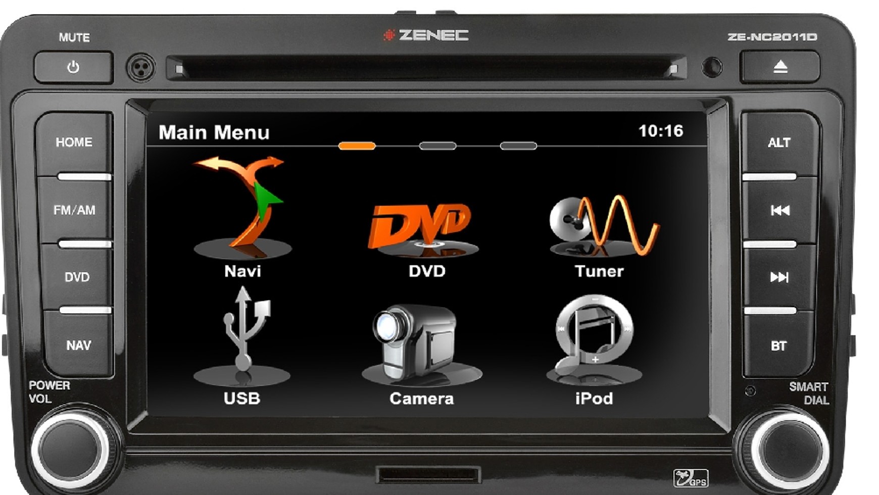 Kluczowa funkcjonalność: nowe radio Zenec ZE-NC2110D zostało dopasowane do współpracy z cyfrową instalacją CAN bus a w szczególności ze wszystkimi nowinkami jakie pojawiły się w platformie Golfa 6 generacji. To zaś oznacza, że na dużym 6,5 calowym ekranie nowego radioodtwarzacza kierowca zobaczy wszystkie informacje i zupełnie nowe grafiki z systemu Climatronic oraz czujników systemu parkowania OPS. Ponadto może sterować wyposażeniem samochodu poprzez ekran dotykowy.