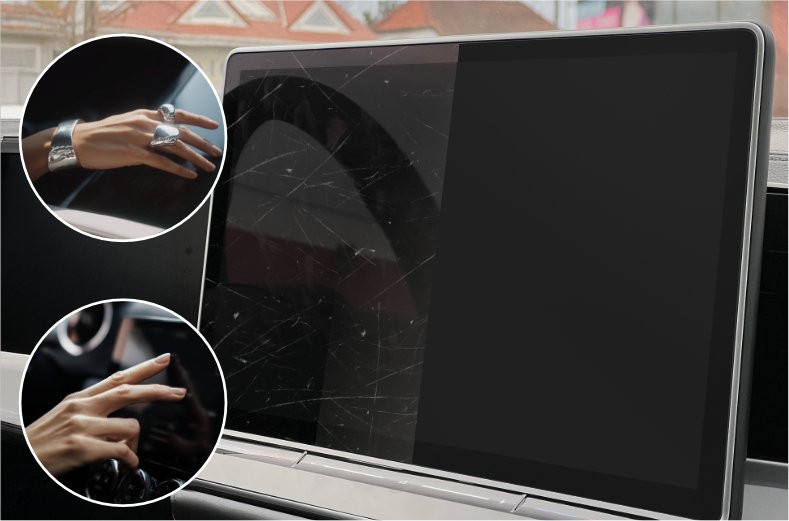 Do tego dochodzi kurz i drobne zanieczyszczenia. Nawet delikatne przecieranie wyświetlacza może powodować drobne rysy na ekranie samochodu. Z czasem ekran traci przejrzystość, a korzystanie z niego staje się mniej komfortowe.