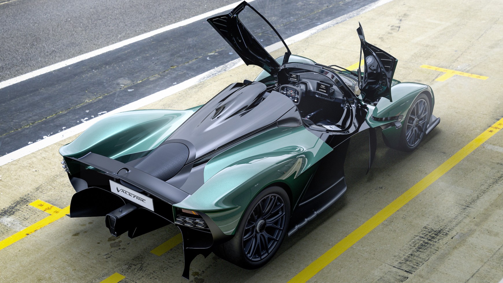 Kluczem do bezprecedensowych osiągów Astona MArtina Valkyrie Spider jest ultralekka konstrukcja i pakiet aerodynamiczny o dużej sile docisku. Górne powierzchnie kokpitu w kształcie łzy i dolne kontury wanny pokrywają przestrzeń dostępną między ogromnymi, pełnowymiarowymi tunelami Venturiego, które biegną po obu stronach podłogi kokpitu. Tunele te, zasysając ogromne ilości powietrza pod samochodem, zasilają tylny dyfuzor i przyczyniają się wygenerowania nadzwyczajnej siły docisku Astona Martina Valkyrie Spider – ponad 1400 kg przy 240 km/h w trybie torowym –– utrzymując jednocześnie górne powierzchnie nadwozia wolne od dodatkowych urządzeń aerodynamicznych, które mogłyby zepsuć czystość stylizacji otwartego dachu.