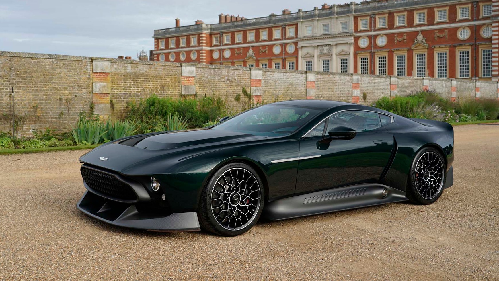 Wnętrze hipnotyzuje wykończeniem ciemnozieloną skórą z brązowymi wstawkami, kaszmirowymi dodatkami oraz detalami z anodyzowanego aluminium, polerowanego tytanu, drewna orzechowego i oczywiście włókien węglowych. Pozbawiona górnej części wieńca kierownica pochodzi z Vulcana. Co ważne, jak zapewnia Aston martin, całe auto jest lżejsze od One-77, który ważył niespełna 1500 kg.