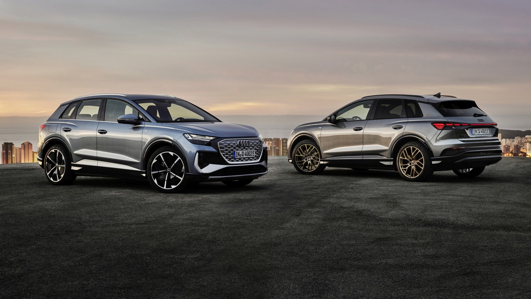 - Pod względem długości nowe Audi Q4 e-tron plasuje się pomiędzy krótszym Volkswagenem Tiguanem a Skodą Kodiaq