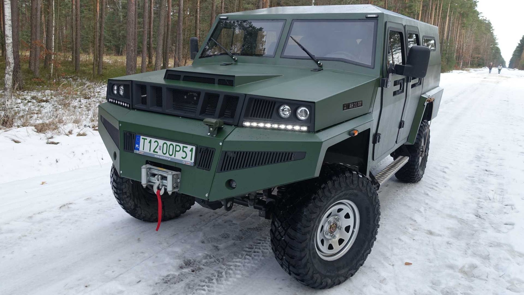 Pierwszy prototyp jeździ już od kilku miesięcy. Na cyfrowym liczniku ok 3 tys. km (w miejsce tradycyjnych zegarów jest wyświetlacz stosowany m.in. w najnowszych wojskowych Starach 266M2). Już tyle wystarczyło, by zaplanować pierwsze zmiany w konstrukcji. Dlatego tajemnicą pozostaje masa samochodu (DMC do 3,5 t), gdyż zależnie od modyfikacji może się znacząco zmienić. Mimo to znamy już sporo szczegółów. Prototyp otrzymał stalowe nadwozie oraz aluminiowe drzwi i maskę. Auto mierzy 4,86 m długości, 2,07 m szerokości (pomiar bez lusterek) oraz 2,13 m wysokości (rozstaw osi wynosi aż 2,95 m). Dla porównania, to pojazd tak długi jak Volkswagen Touareg i szeroki jak duży dostawczy MAN TGE.