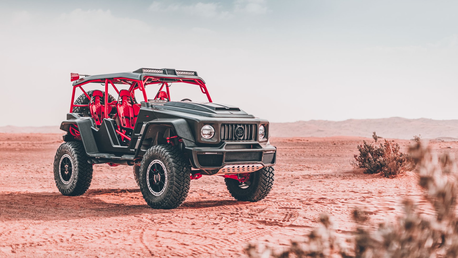 Co w nim jest takiego super? Chyba właśnie to, że ktoś w Brabusie mocno popuścił wodzę fantazji. Ten szalony buggy, choć jest zbudowany na bazie G63 ma bardzo dużo zmian. Cała góra auta została odcięta, zamontowano za to klatkę wykonaną z włókna węglowego, do tego zniknęły też drzwi, maska ma wielki wlot, a z boku auto dostało ogromne nadkola, pod którymi mieszczą się 20-calowe kute felgi Brabus Monoblock HD obite 40-calowymi terenowymi oponami. Praktycznie całe nadwozie jest zrobione z włókna węglowego, nawet fotele.