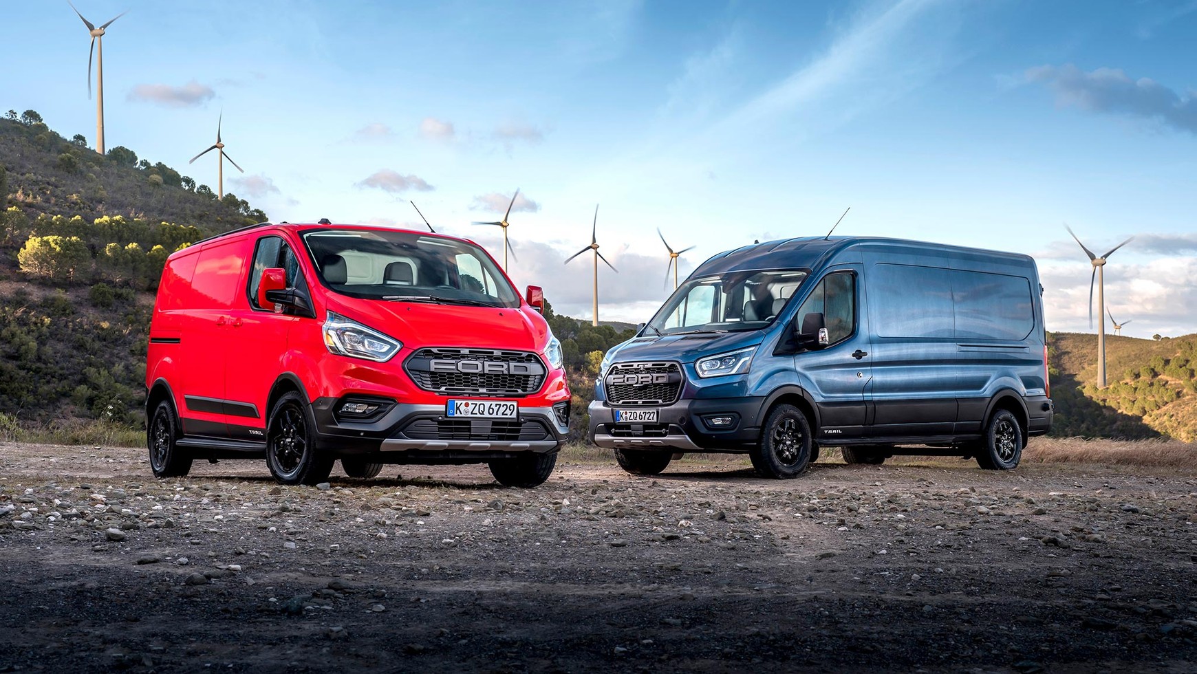 Transit Trail i Transit Custom Trail napędzane są 2,0-litrowym dieslem EcoBlue w trzech wariantach mocy: 130 KM, 170 KM i 185 KM. Poza tym Transit Custom Trail oferowany jest (w tych samych wariantach mocy) jako miękka hybryda z 48-woltową instalacją elektryczną.