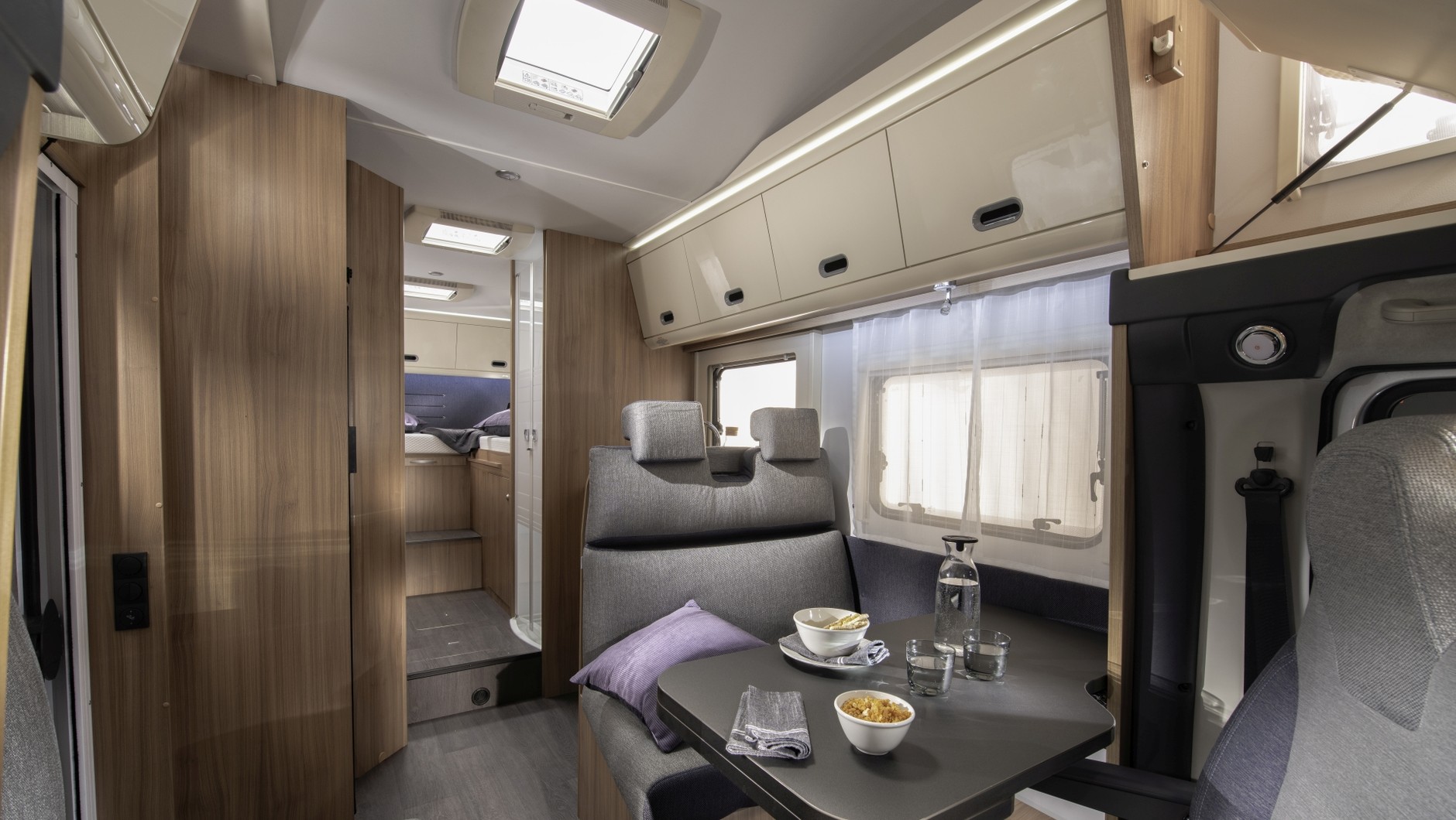 Sun Living seria A. We wnętrzu udało się zmieścić większą lodówkę (142 l pojemności) oraz wygospodarować schowek na rowery elektryczne. Dodano nowe oświetlenie, gniazda USB oraz udoskonaloną łazienkę Ergo.