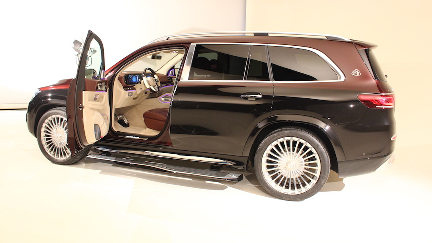 Dalszy ciąg artykułu pod materiałem wideoBardzo dobrym rozwiązaniem, ułatwiającym wsiadanie i wysiadanie, jest wysuwany spod progu stopień – pojawia się w momencie otwierania drzwi (jest na tyle długi, że może skorzystać z niego i kierowca, i pasażerowie jadący z tyłu). Po zamknięciu drzwi stopień chowa się pod próg, przyciskając włącznik na desce rozdzielczej można go jednak pozostawić na zewnątrz, nawet podczas jazdy. Docenią to zapewne właściciele GLS-ów Maybachów korzystający z osobistej ochrony.