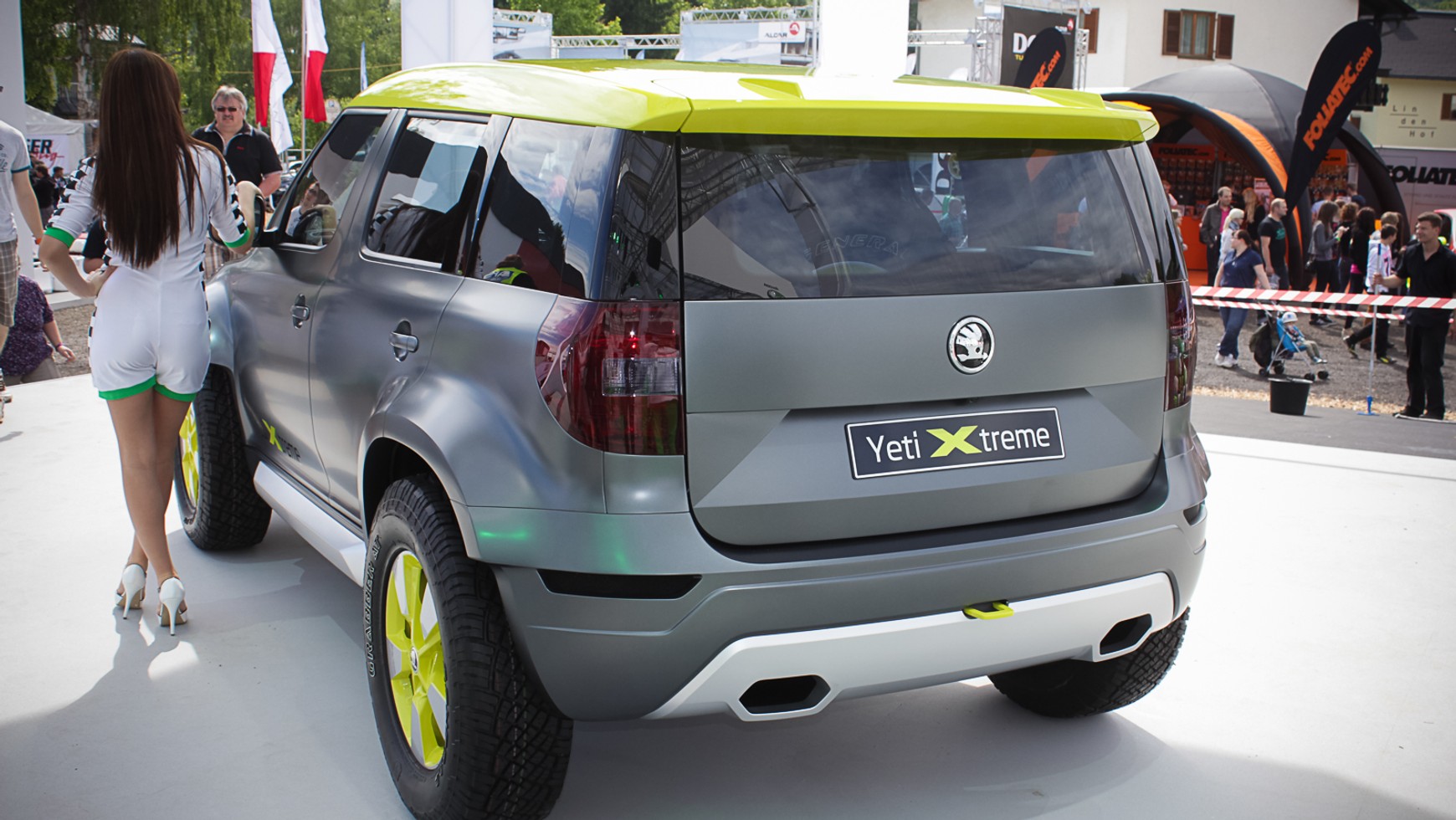 Podczas procesu tworzenia Yeti Xtreme, projektanci Skody mieli za zadanie przekształcić swojego SUV-a w bojowo wyglądający pojazd sportowy. Matowo-szare Yeti porusza się na 17-calowych obręczach kół i dużych terenowych oponach. Auto ma przyciemnione boczne szyby, podczas gdy dach i elementy obręczy felg są w jasnym żółto-zielonym kolorze.