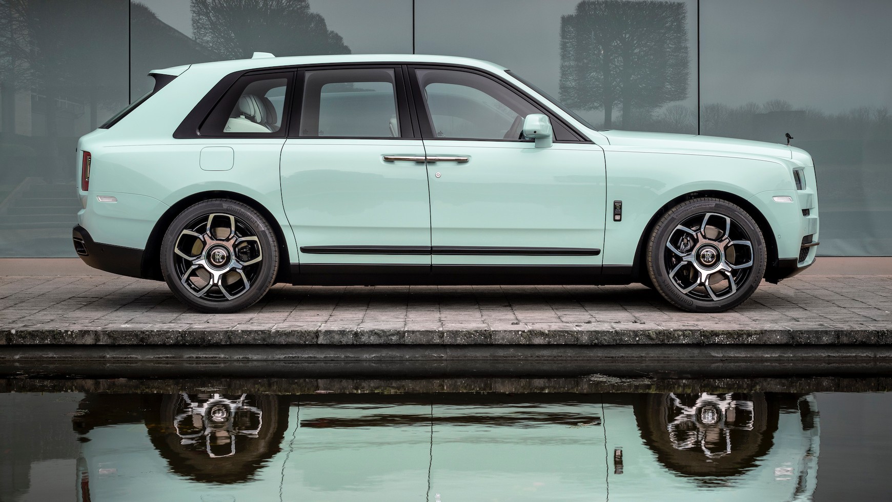 Najbardziej luksusowy SUV świata przykuwa wzrok odważną, miętową kolorystyką nadwozia określaną jako Segano Green. Jego projektanci powołują się na barwy stosowane w słynnych artefaktach z połowy XX wieku, takich jak gitara Fender Stratocaster czy fotel bujany Eames i przy okazji udowadniają że słynna seria Black Badge często zamawiana jest w lakierach znacznie odbiegających od klasycznej czerni. Czarne akcenty znajdziemy za to we wnętrzu utrzymanym w jasnej tonacji Serenity Green z wstawkami z włókna technicznego.