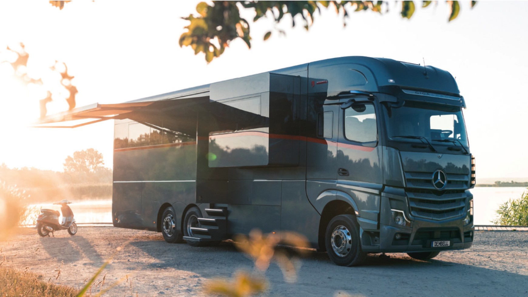 Tak to można podróżować! Dzieło firmy Dembell nie bez powodu zostało ochrzczone mianem “lądowego jachtu”. W istocie to ten sam, abstrakcyjny wręcz poziom luksusu, tyle że przeniesiony na trzyosiowe podwozie Mercedesa Actrosa. Za jego sterami nie może zasiąść zatem zwykły śmiertelnik z prawem jazdy kat. B. Ale... warto zrobić dodatkowe uprawnienia.
