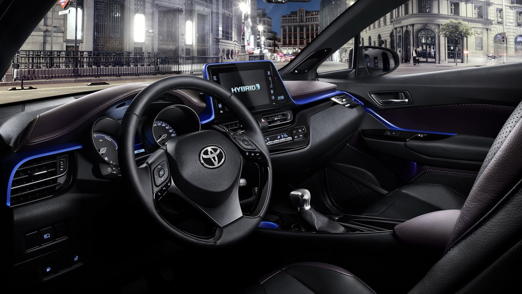 Wnętrze Toyoty C-HR powstało zgodnie z nową koncepcją stylistyczną Sensual Tech, która ma łączyć nowoczesne technologie z wysoką jakością materiałów i stylem. Projekt przestronnej kabiny jest skoncentrowany na komforcie kierowcy, a ponieważ auto - w zamyśle producenta - będzie rywalizować z crossoverami marek premium, Toyota przykłada dużą wagę do jakości użytych materiałów.