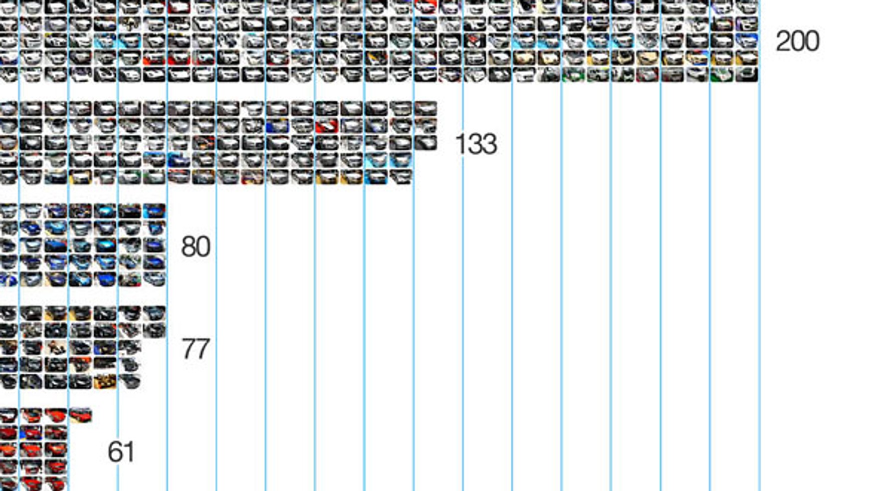 Okazuje się, iż z 706 wystawionych samochodów aż 200, a więc najwięcej, miało białą barwę nadwozia. Taki pojazd w tym roku miał na swoim stoisku prawie każdy wystawca.