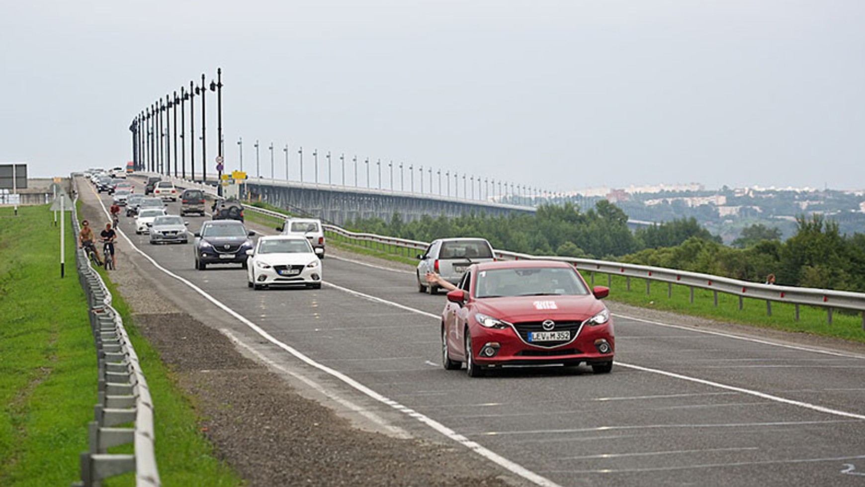 Na koniec o naszych samochodach. Mazda3 sprawuje się bez zastrzeżeń. Każdy z uczestniczących w teście samochodów obciążony jest bagażem ok. 340 kg (trzech pasażerów, dwa koła zapasowe, duży kanister z paliwem i bagaż podręczny każdego z nas). Co ważne, zawieszenie na takich kiepskich drogach bez problemu daje radę.