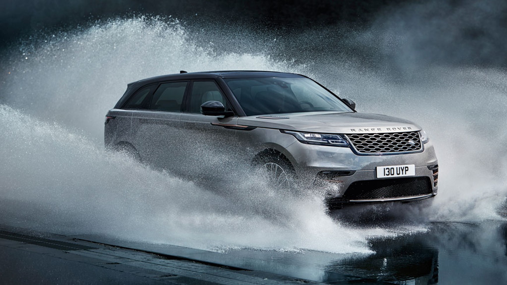 W sylwetce Velara, która wyróżnia się także najniższym spośród wszystkich Range’ów współczynnikiem oporu powietrza (0,32), uwagę zwracają: masywny przedni zderzak z dużą atrapą grilla, wąskie ledowe reflektory (w topowych wersjach Matrix-Laser LED), chowane w drzwiach klamki, charakterystyczny układ diodowych lamp tylnych oraz dwie chromowane końcówki wydechu, wkomponowane w zderzak. Pod zgrabną klapą tylną kryje się bagażnik o pojemności aż 673 l – największy w tej klasie.