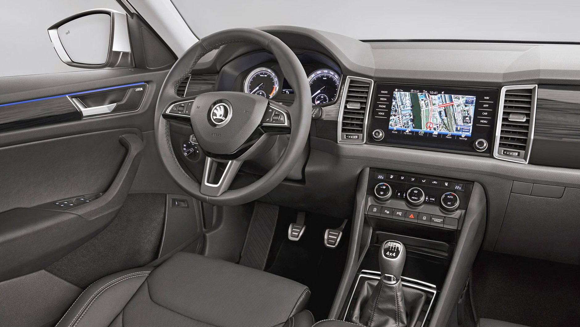 Nowa Skoda Kodiaq ma długość 4,70 m i szerokość 1,88 m. Podstawowa wersja przeznaczona jest dla pięciu osób, ale na życzenie można zamówić trzeci rząd siedzeń. W zależności od konfiguracji przestrzeń bagażowa może oferować od 720 do 2065 l (przy złożeniu tylnych siedzeń).