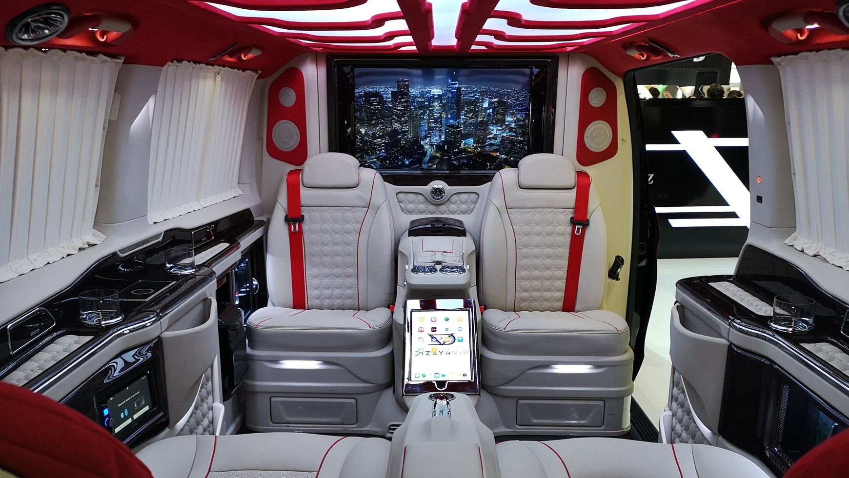 Nabywcy luksusowych vanów mają dość zróżnicowane życzenia. Na liście wyposażenia pojawiają się takie dodatki jak np. ukryte sejfy, kino samochodowe jak domowe (dźwięk dookólny w standardzie 7.1), rolety z alcantary, dodatkowe tablety i routery WiFi, Apple TV, określone gatunki skór, zastawa od wyselekcjonowanych dostawców, telewizory 4K. Można również zamówić indywidualne wzory dywaników czy dodatkową izolację akustyczną kabiny. Jeden z rosyjskich wytwórców instaluje nawet panele oświetleniowe przejęte wprost z Maybacha.