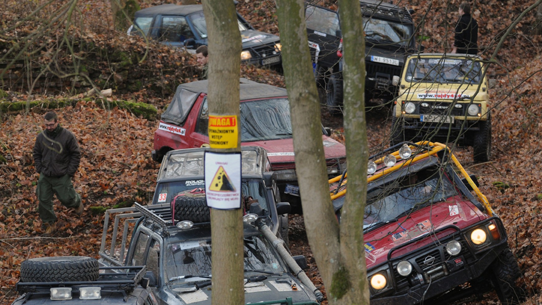 Wyczynowcom dla utrudnienia, zaplombowano wyciągarki. W ruch poszły więc trapy i kinetyki. Pierwsi śmiałkowie w drodze po pieczątkę utknęli na kwadrans w fosie. Następni zawodnicy, obserwując te zmagania, szukali innej trasy. Jadąc od drugiej strony – stromą, ciasną ścieżką, można było podbić kartę już po minucie. Przy pokonywaniu przeszkód efekty dawała praca zespołowa kilku aut. Taką taktykę stosowali kierowcy UAZ-ów. Pierwsza załoga rozkładała trapy, po których przejeżdżały trzy auta jedno po drugim. Na jednym z mokrych oesów, woda z bajorka dostała się do silnika Daihatsu i jakoś nie chciała się sprężyć.