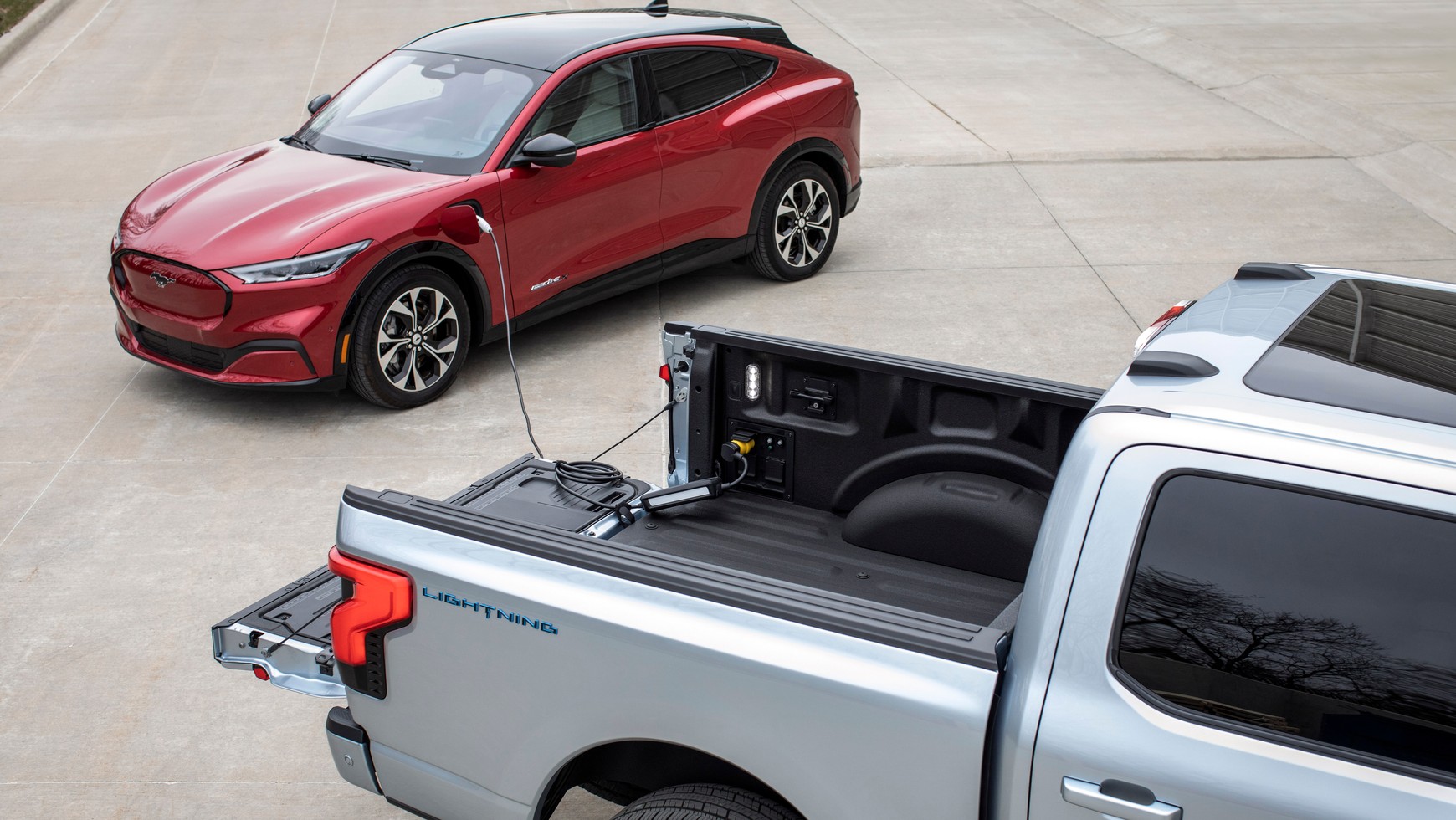 - F-150 Lightning oraz F-150 PowerBoost Hybrid pomoże naładować nie tylko inne pojazdy elektryczne Forda, ale także samochody innych producentów. Według szacunków, podczas godziny takiego ładowania, zasięg Mustanga Mach-E z akumulatorem o zwiększonym zasięgu i napędem na tylne koła zwiększy się o ok. 32 km, a F-150 Lightning o ok. 21 km.