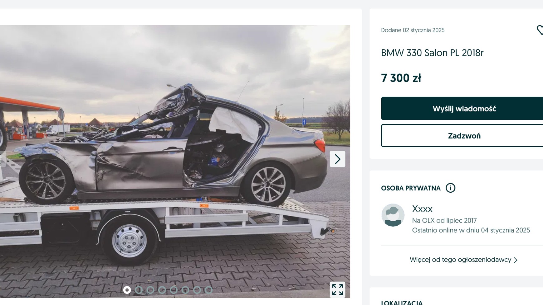 - W serwisach ogłoszeniowych można znaleźć wiele ofert sprzedaży wraków, w przypadku których nie ma szans na ekonomicznie uzasadnioną naprawę