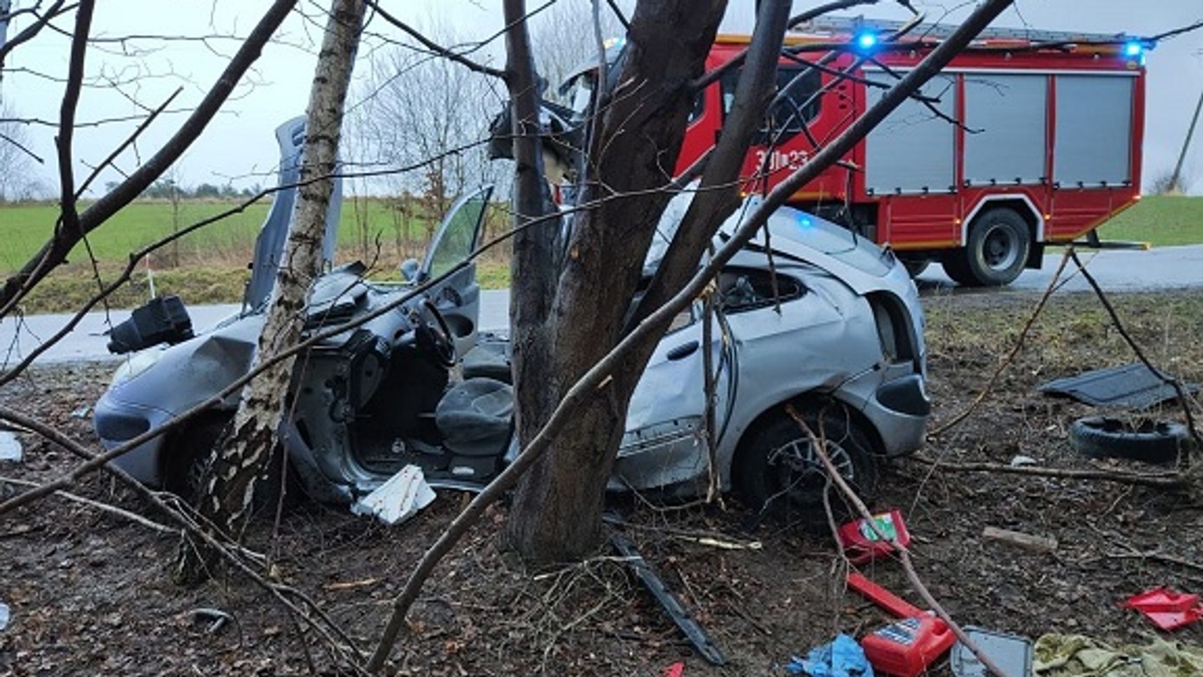 Wczoraj około godziny 15:00 dyżurny zamojskiej komendy otrzymał informację o tragicznym wypadku na drodze wojewódzkiej numer 843 w miejscowości Zrąb. 18-letni mieszkaniec gminy Zamość, kierujący samochodem marki Citroen, nie dostosował prędkości do panujących warunków i stracił panowanie nad pojazdem. W wyniku tego zjechał na przeciwny pas ruchu, a następnie na lewe pobocze i uderzył w drzewo. W wyniku wypadku zginęła 56-letnia pasażerka, a 64-letni pasażer jest w ciężkim stanie.