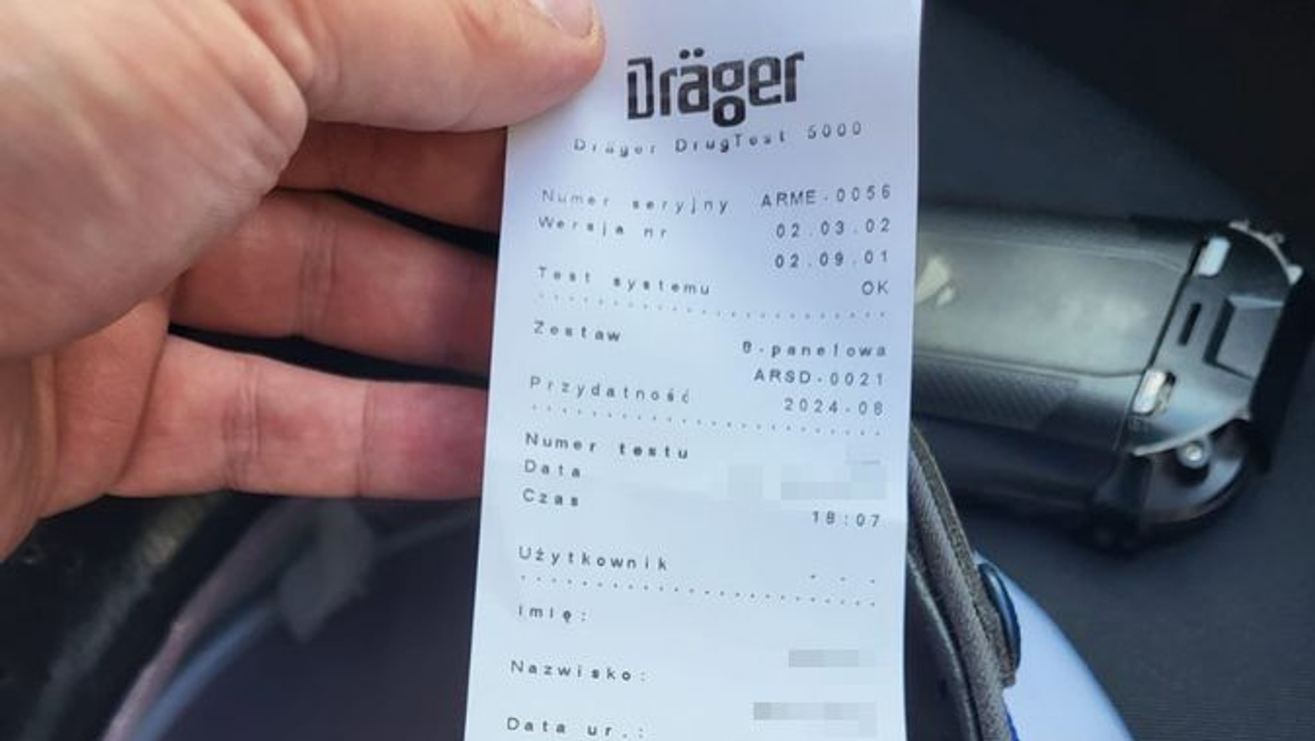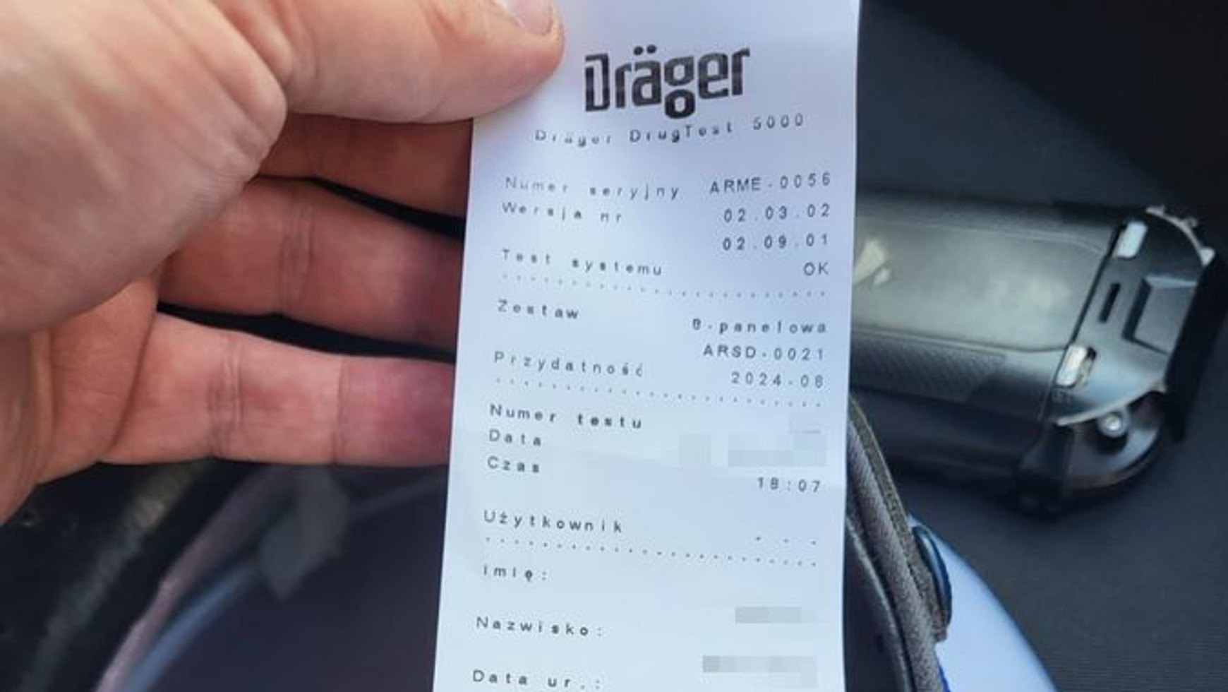 Zachowanie kierowcy wzbudziło podejrzenia policjantów. Po przeprowadzeniu testu narkotykowego potwierdziły się ich obawy – mężczyzna był pod wpływem substancji psychoaktywnych. Został zatrzymany i przewieziony do szpitala na dalsze badania. Policja zatrzymała jego prawo jazdy oraz dowód rejestracyjny pojazdu.