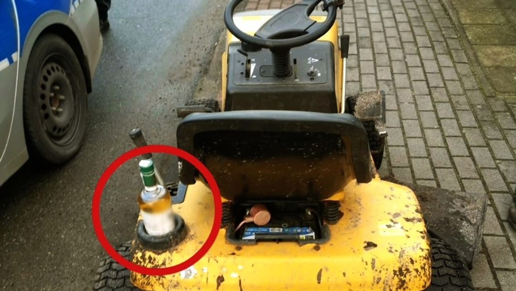 Jak ustalili policjanci, 52-latkowi zabrakło alkoholu, więc wsiadł za kierownicę traktorka i chodnikiem pojechał do pobliskiego sklepu po więcej. Mundurowi zatrzymali mężczyznę, gdy wracał do domu, a w znajdującym się w pojeździe uchwycie na kubek miał wsadzoną butelkę wódki.