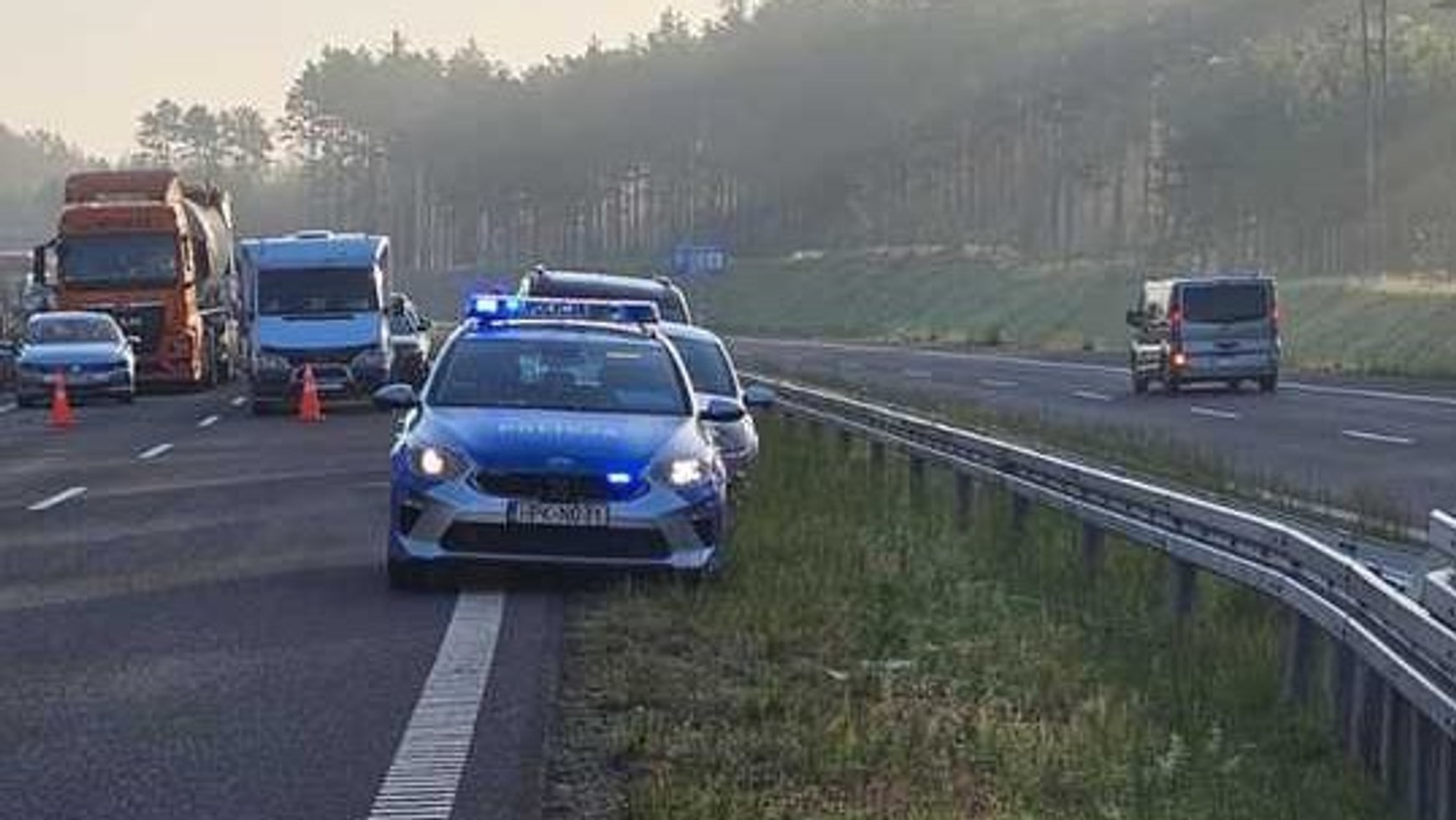 Wypadek miał miejsce tuż po godzinie 2:00. Dostawczy peugeot, którym kierował 27-latek, zderzył się z jadącym w tym samym kierunku fordem. Siła uderzenia była na tyle duża, że 55-letni kierowca forda zginął na miejscu. Młodszy z kierowców został przewieziony do szpitala. Na miejscu zdarzenia przez kilka godzin pracowali funkcjonariusze policji, którzy dokładnie badali okoliczności wypadku.