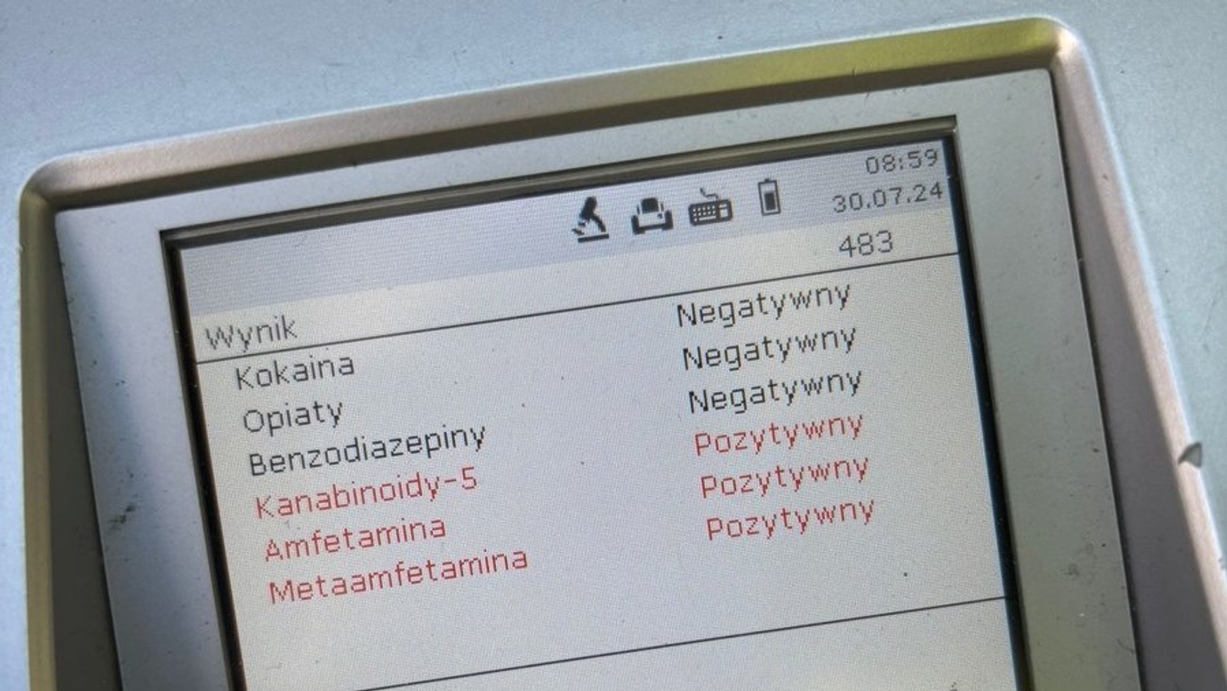 Mundurowi przeprowadzili badania na zawartość alkoholu i narkotyków w organizmie mężczyzny. Choć wynik testu na alkohol był negatywny, test na narkotyki dał pozytywny wynik. W związku z tym mężczyzna został zatrzymany, a jego pojazd odholowany na policyjny parking.