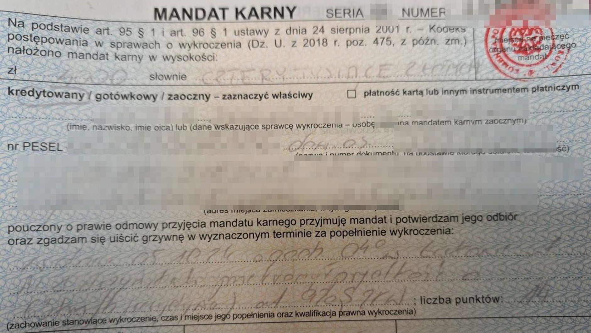 Mężczyzna, który już wcześniej był karany za podobne wykroczenia, tym razem musiał zapłacić podwójną grzywnę. Zgodnie z przepisami, recydywa skutkuje wyższymi karami, co w tym przypadku oznaczało mandat w wysokości 4000 zł. Dodatkowo, kierowca stracił prawo jazdy i otrzymał 14 punktów karnych.