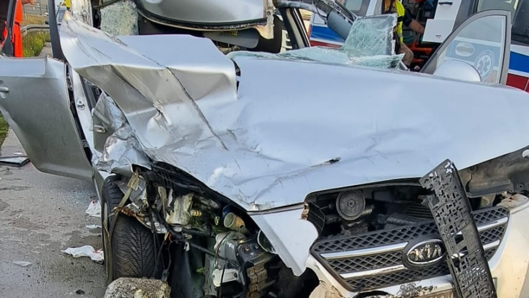 Funkcjonariusz szybko ocenił sytuację. Kierowca ciężarówki nie odniósł obrażeń, więc poprosił go o wezwanie służb ratunkowych. Sam przystąpił do udzielania pomocy przedmedycznej zakleszczonym w osobówce osobom. Kierowca miał obrażenia twarzy, a jego 14-letni syn był zakleszczony z ranami ciętymi w okolicy oka.