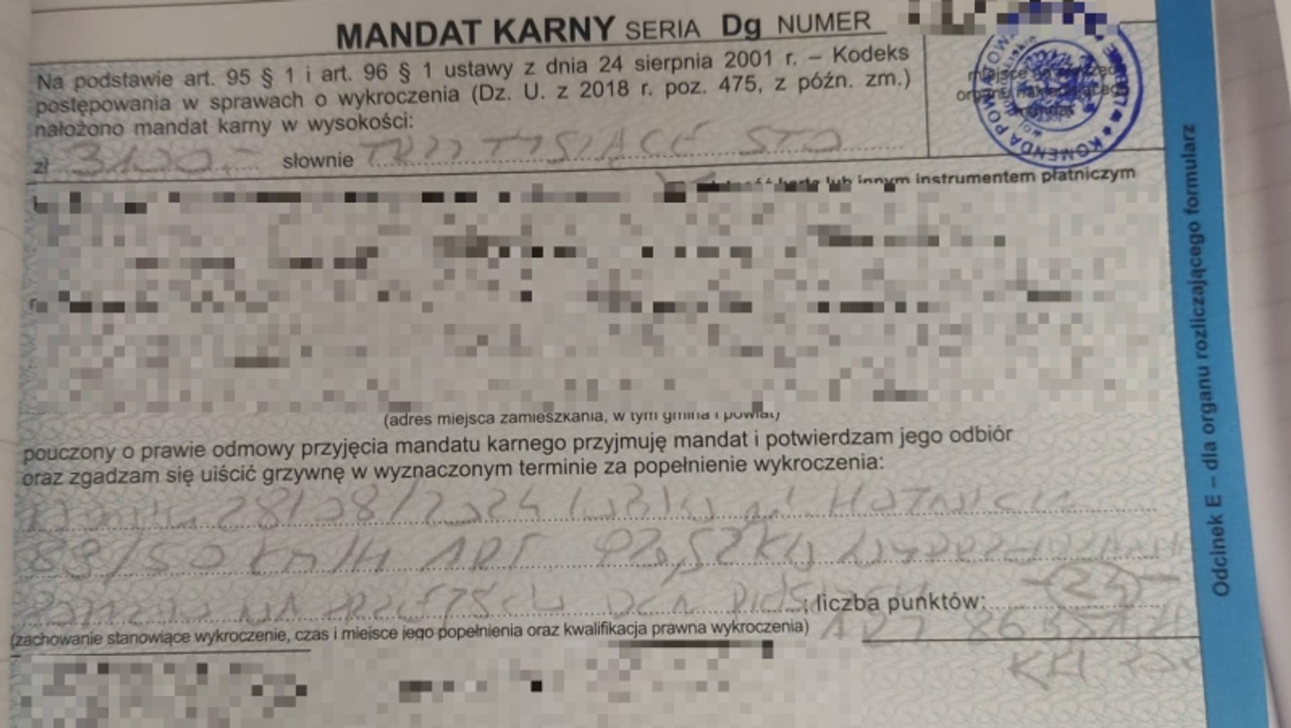 Młody kierowca stracił prawo jazdy i dostał mandat w wysokości 3,1 tys. zł. Dodatkowo, do jego konta dodane zostały 24 punkty karne. Teraz, aby odzyskać uprawnienia, mężczyzna będzie musiał ponownie zdać egzamin.
