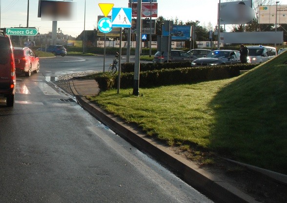 Zdarzenie miało miejsce przed godziną 7 rano na ulicy Starogardzkiej w Straszynie, należącej do Gminy Pruszcz Gdański. Policjanci otrzymali zgłoszenie o wypadku, w którym rowerzysta uderzył w bok samochodu osobowego. Mężczyzna został przetransportowany do szpitala w Gdańsku, gdzie sprawdzony zostanie jego stan trzeźwości.