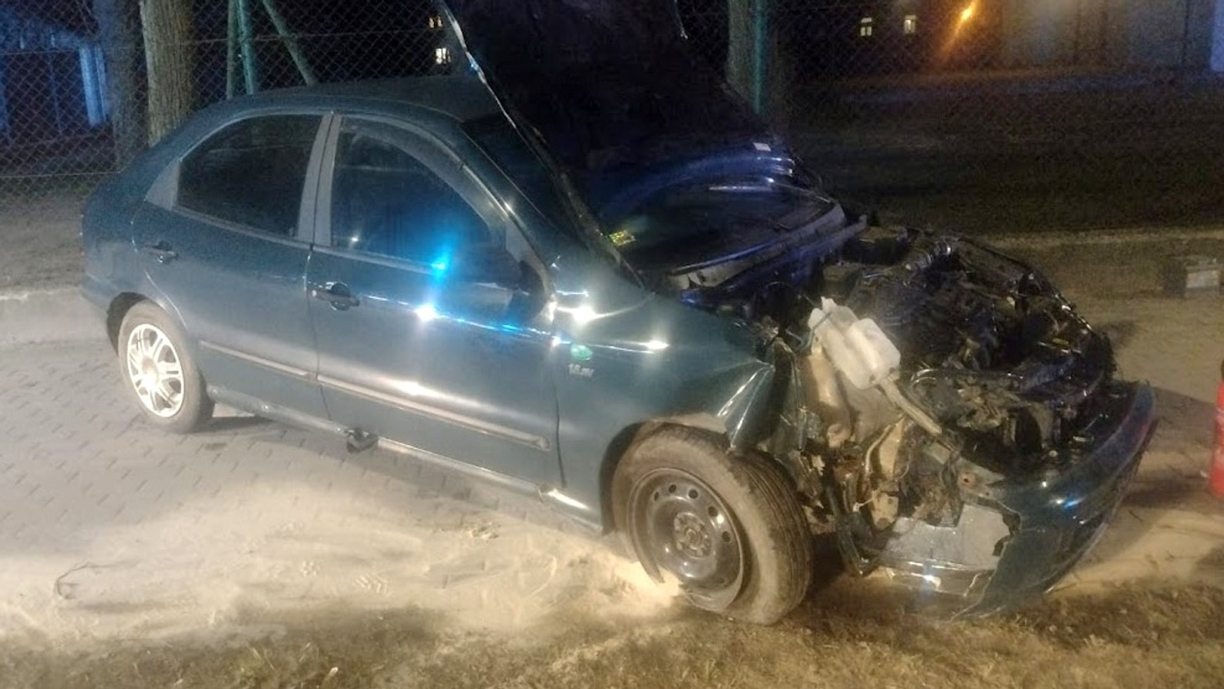 Policjanci z piskiej drogówki zostali wezwani na miejsce zdarzenia, które miało miejsce przed godziną 20:00. 18-letni kierowca Fiata Brawa, nie zapanował nad prędkością, w wyniku czego wjechał na wysepkę i uszkodził dwa znaki drogowe. Mimo groźnego wyglądu zdarzenia, wszyscy uczestnicy wyszli z niego bez szwanku.