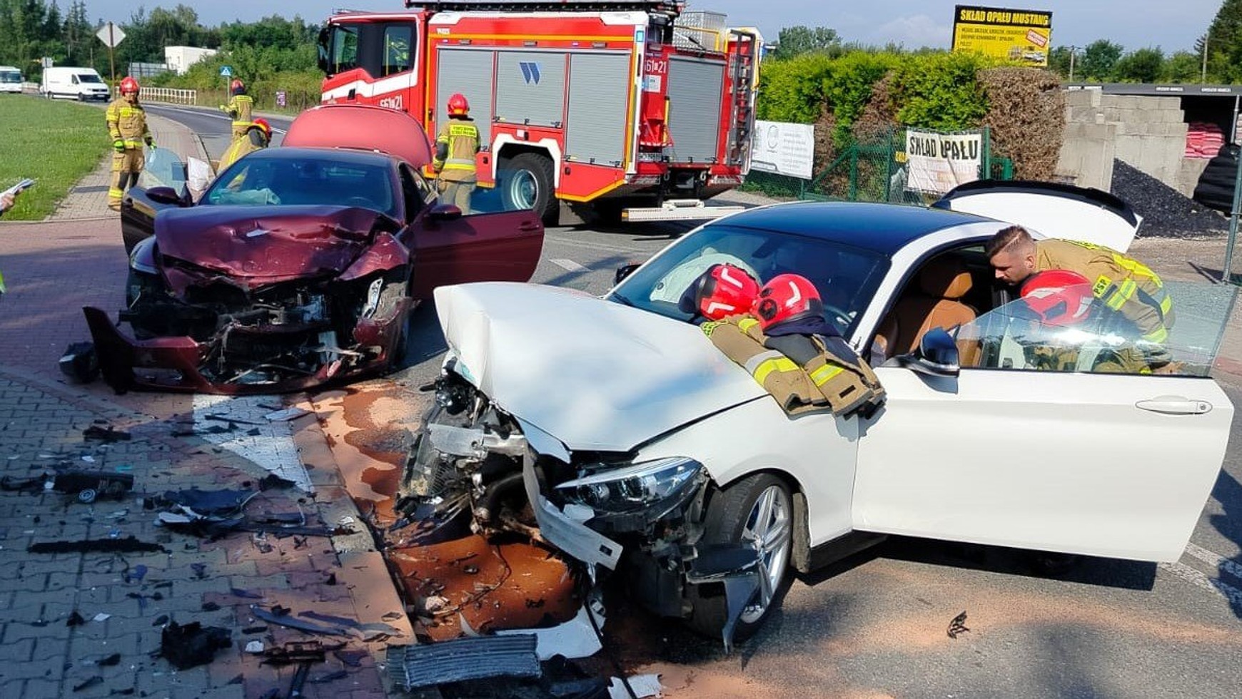 Wypadek miał miejsce w godzinach porannych. Dwa samochody osobowe marki BMW zderzyły się czołowo. 36-letni kierowca jednego z pojazdów, wykonując manewr skrętu w lewo na parking sklepowy, nie ustąpił pierwszeństwa i doprowadził do kolizji z nadjeżdżającym z przeciwnego kierunku samochodem, którym kierował inny 36-latek. W drugim pojeździe podróżowała także 37-letnia kobieta.