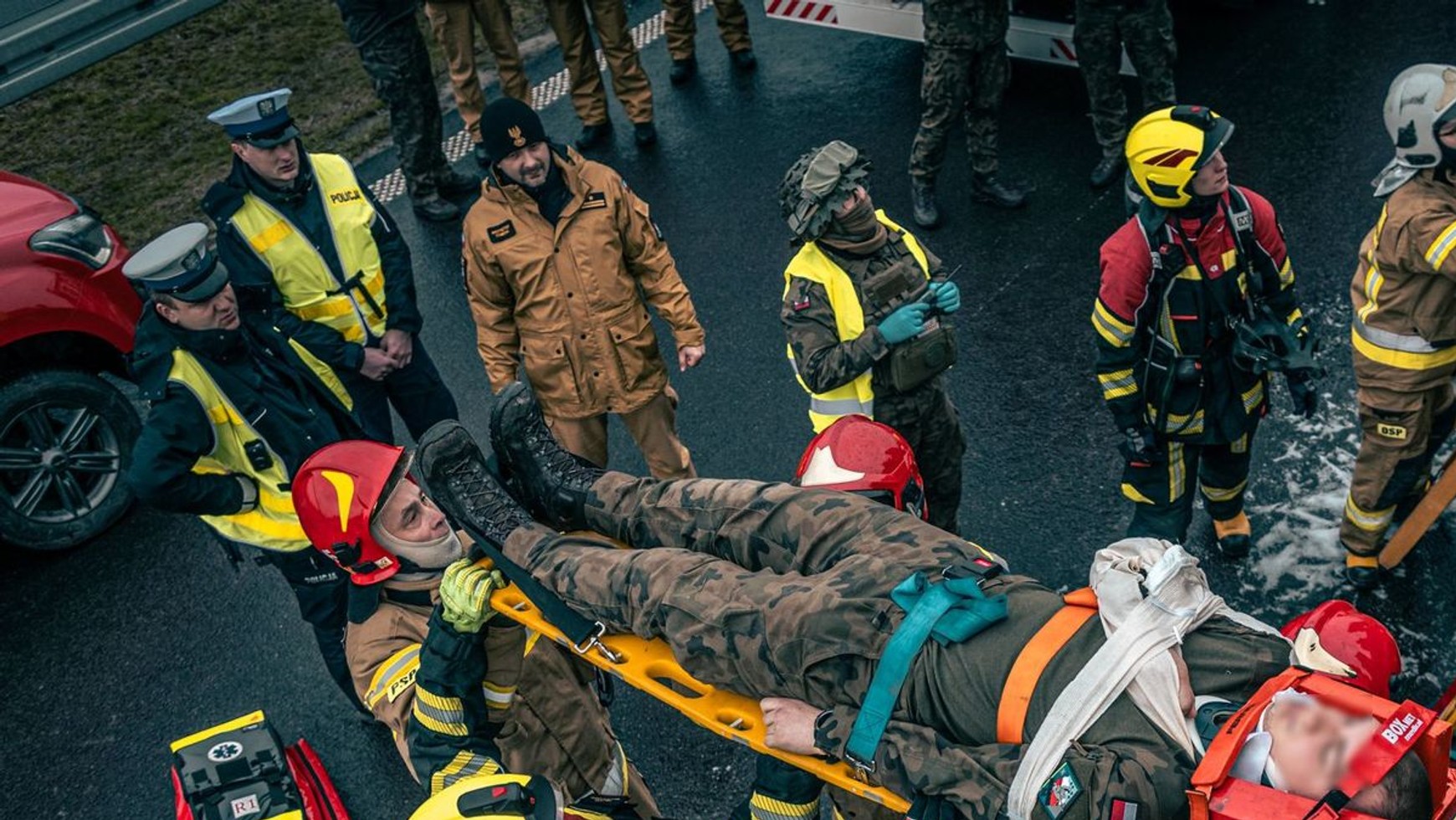 Od strony Rzeszowa w kierunku Lublina trasą S-19 poruszała się kolumna wojskowa z opancerzonymi transporterami. W pewnym momencie wskutek awarii jednego z nich, doszło do najechania na niego przez inny jadący w kolumnie transporter. Wskutek wypadku kilka osób doznało obrażeń. Jeden z pojazdów stanął w ogniu. Na miejscu zdarzenia zadysponowano straż pożarną, ratowników medycznych, a także funkcjonariuszy ruchu drogowego KMP w Lublinie oraz KPP Kraśniku. Zadaniem policjantów było zabezpieczenie miejsca wypadku oraz wyznaczenie objazdów.