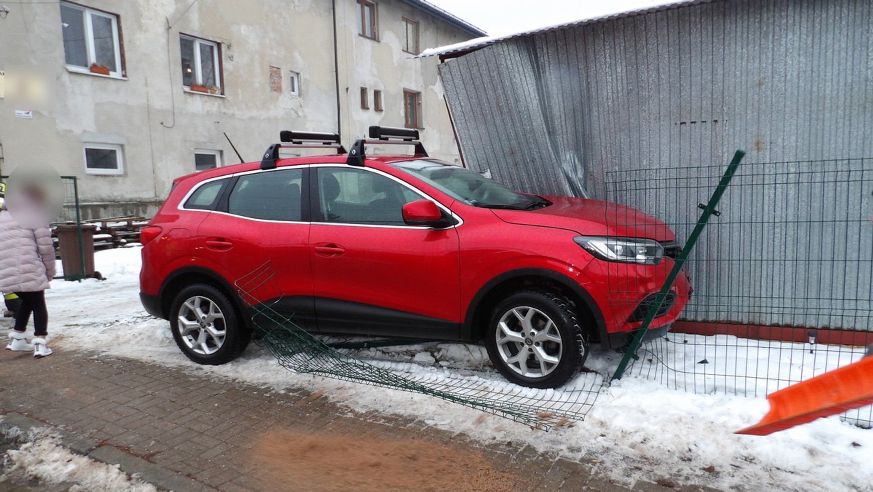 Najbardziej dramatyczne zdarzenie miało miejsce tuż po kolizjach. 45-letnia kierująca osobowym Renault, chcąc uniknąć zderzenia z pojazdami stojącymi przed nią, skręciła w bok, uderzyła w ogrodzenie, garaż i najechała na 7-letniego chłopca idącego po chodniku do szkoły. Chłopiec doznał powierzchownych obrażeń głowy i kończyn dolnych i został przewieziony do szpitala celem wykonania badań.