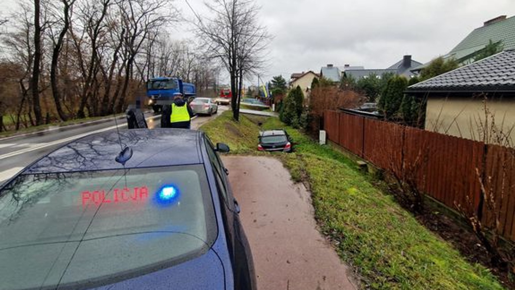 Zgłoszenie o zdarzeniu drogowym na ulicy 1-ego Maja w Tarczynie wpłynęło do piaseczyńskiej komendy. Na miejsce natychmiast wysłani zostali funkcjonariusze wydziału ruchu drogowego. Okazało się, że 31-letni obywatel Ukrainy, nie ustąpił pierwszeństwa kierującej Oplem, co doprowadziło do zderzenia obu pojazdów. W wyniku kolizji Opel zjechał do przydrożnego rowu. Weryfikacja w policyjnym systemie informacyjnym pokazała, że sprawca jest poszukiwany na podstawie nakazu doprowadzenia wydanego przez Sąd Rejonowy dla m.st. Warszawy.