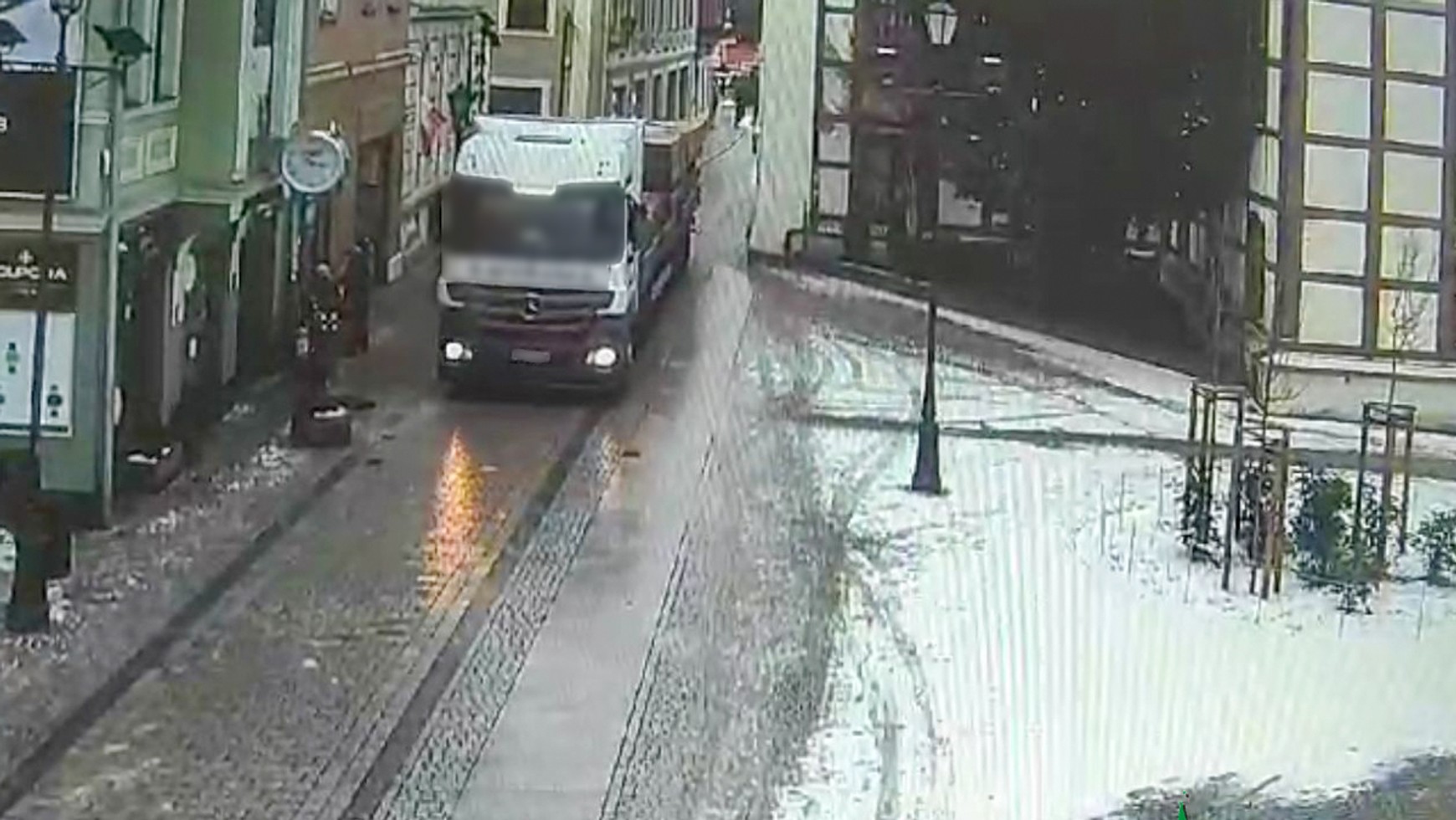 Zdarzenie miało miejsce na zielonogórskim deptaku, strefie przeznaczonej wyłącznie dla pieszych i rowerzystów. Kierowca ciężarówki, przekonany, że nawigacja zawsze doprowadzi go do celu właściwą drogą, wjechał na deptak z ciężkim ładunkiem. Pomimo ogromnych gabarytów pojazdu, udało mu się stamtąd wydostać, co zawdzięcza swoim zawodowym umiejętnościom. Niestety, w wyniku tego manewru doszło do uszkodzenia latarni, znaku drogowego i nasadzeń.