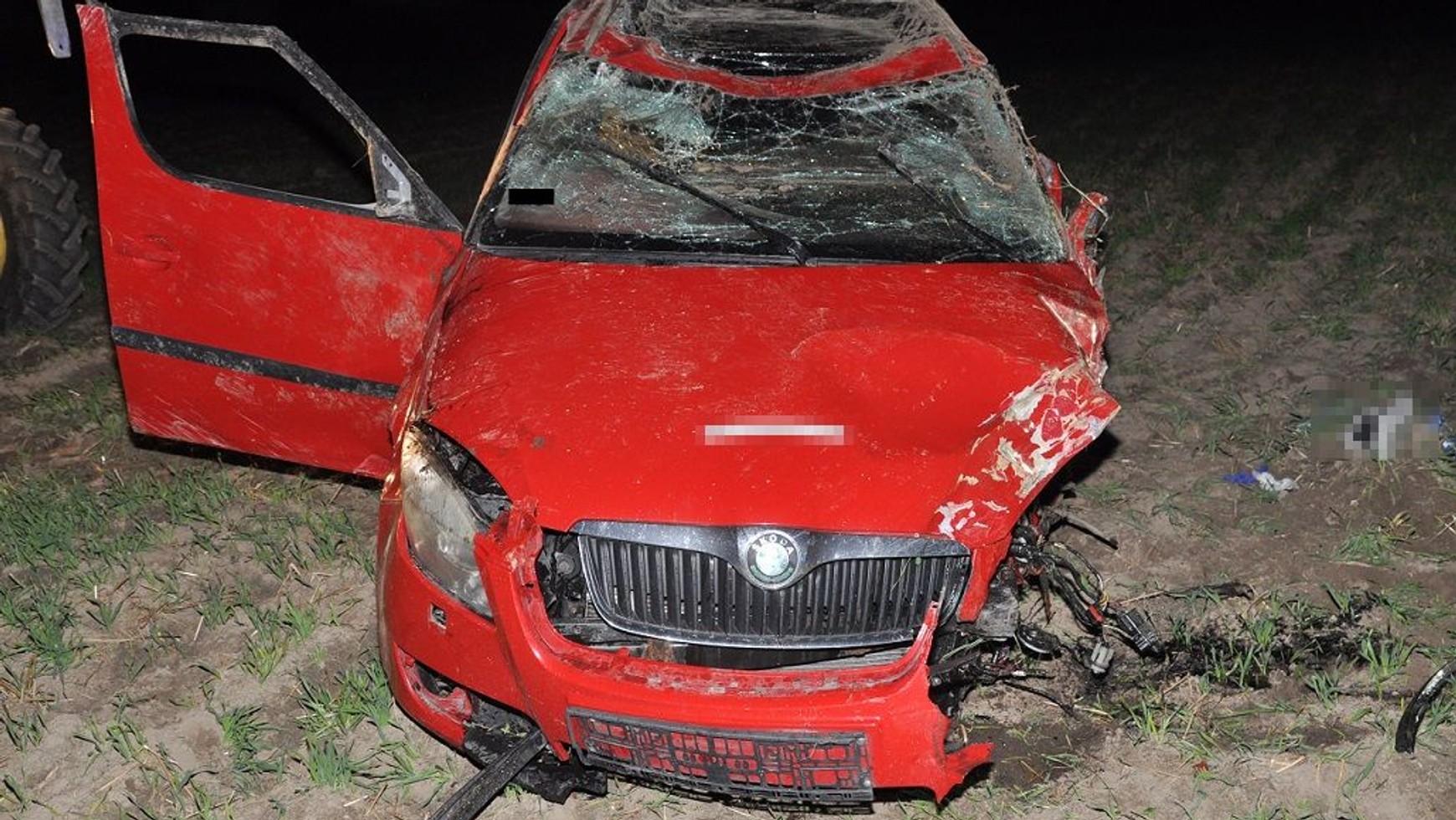 Do zdarzenia doszło po godzinie 21:30 w miejscowości Komarno na drodze wojewódzkiej numer 811. 19-letni kierowca Skody, jadąc z nieznanych przyczyn na przeciwnym pasie, zderzył się bocznie z nadjeżdżającym Audi. Siła uderzenia była na tyle duża, że Skoda odbiła się od Audi, uderzyła w drzewo i przewróciła się na dach. W wyniku wypadku poszkodowany został jedynie kierowca Skody.