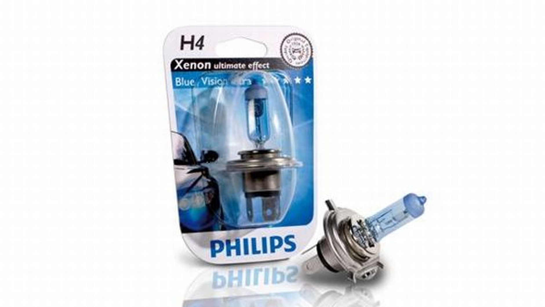 Żarówki halogenowe z niebieskim filtrem, znajdują się m.in. w ofercie marki Philips. Model BlueVision ultra podkreśla ich unikalny ksenonowy efekt. Światło o temperaturze barwowej 4000 stopni Kelvina zapewnia lepszą widoczność znaków i oznaczeń drogowych.